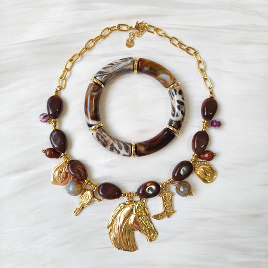Collar Oval Dorado Jaguar(Charms mixtos)– Acero Inoxidable