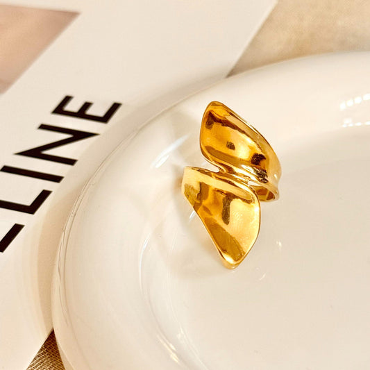 Anillo de Acero Inoxidable con Diseño de Hojas Talla Única - Accesorio Elegante
