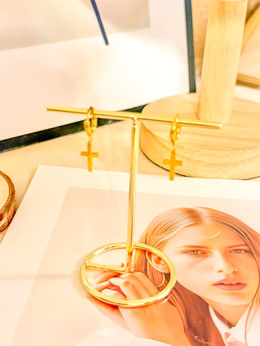 Pendiente cruz dorado