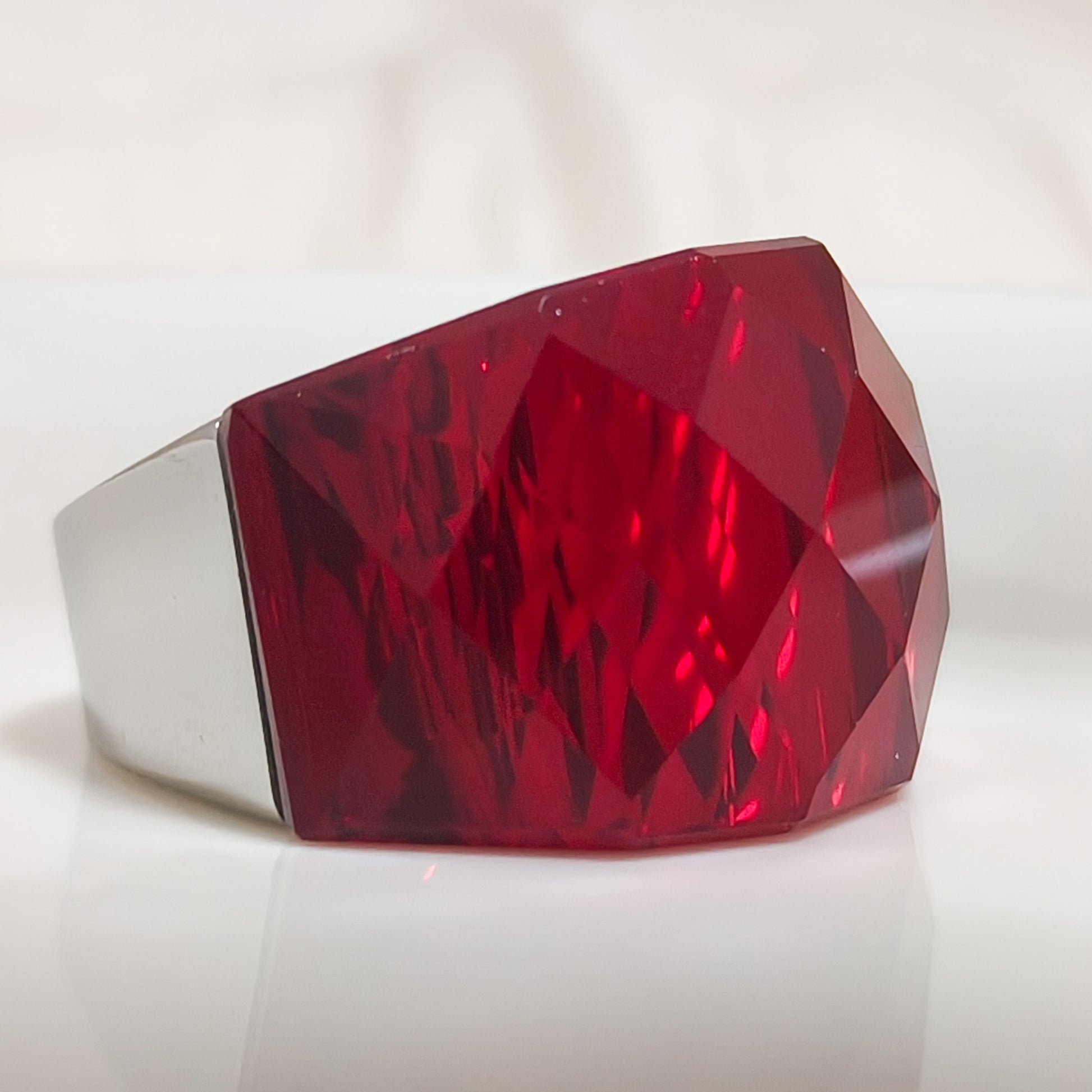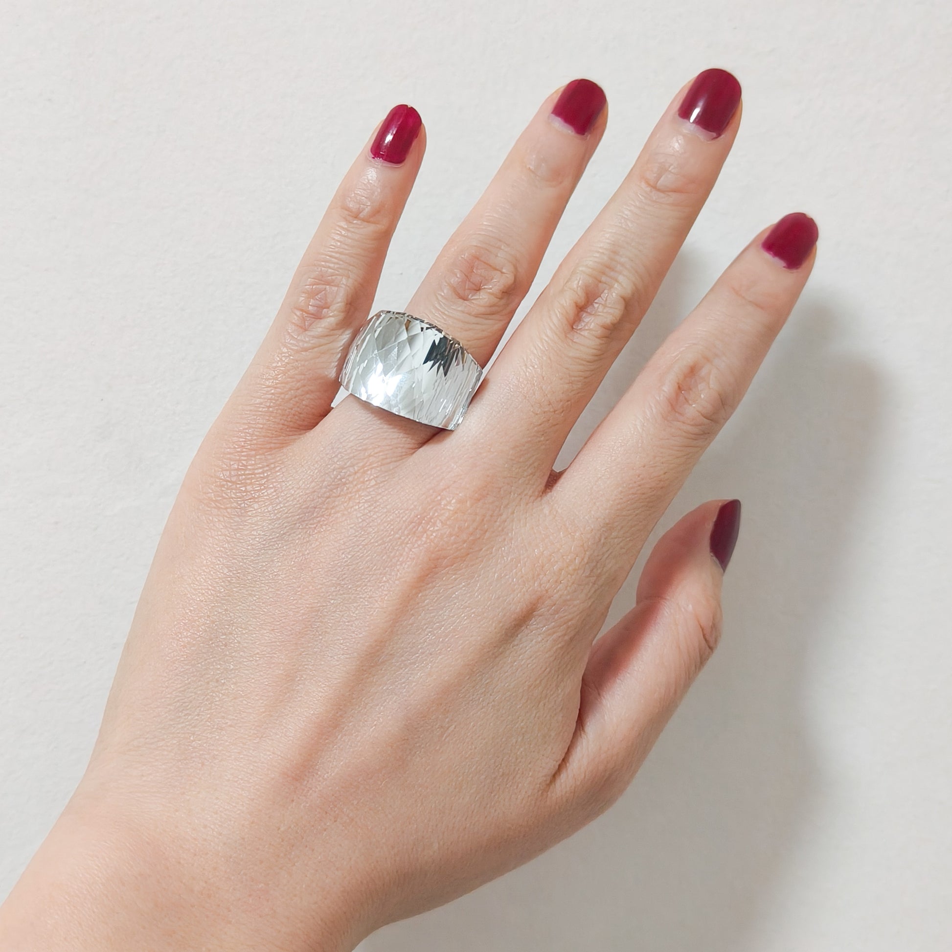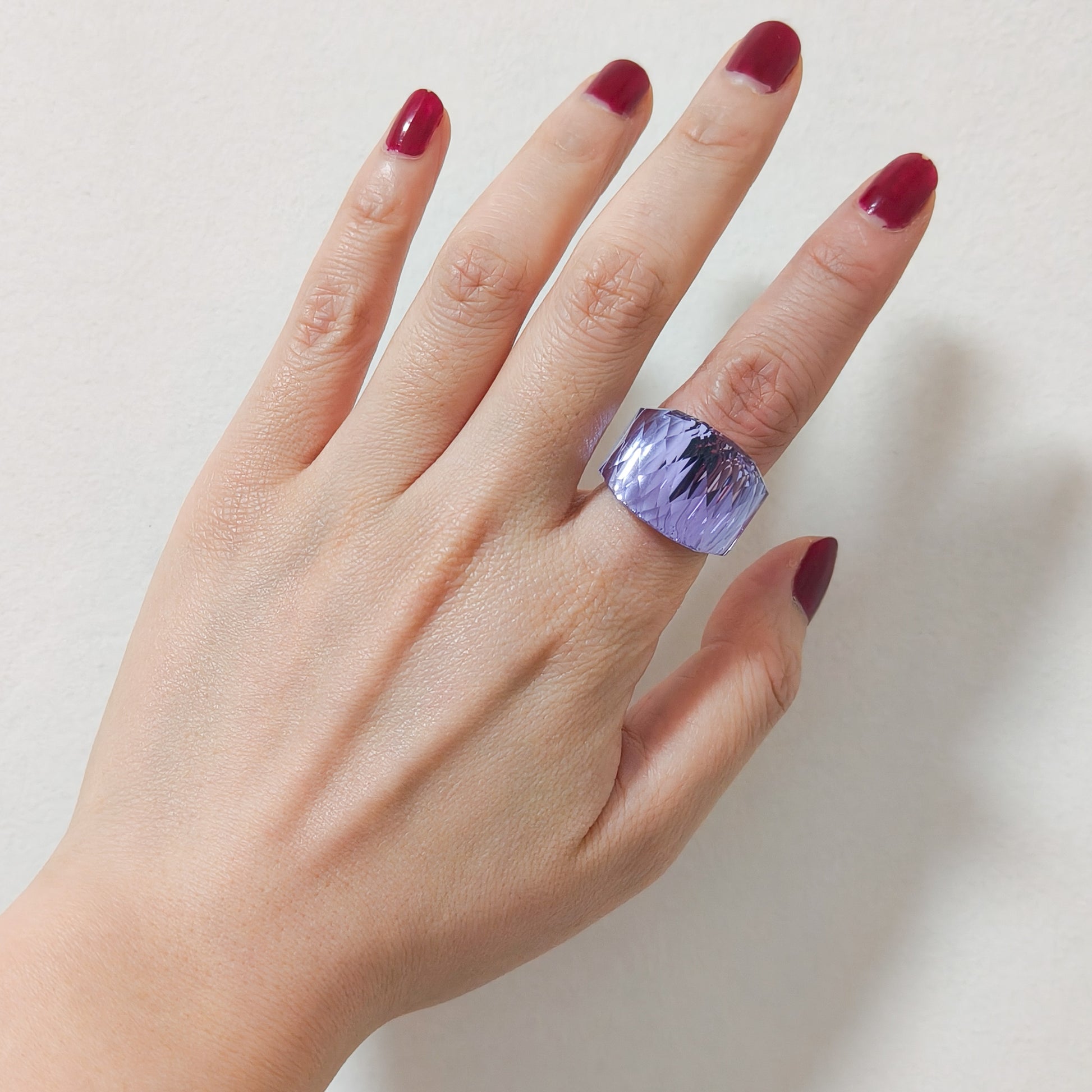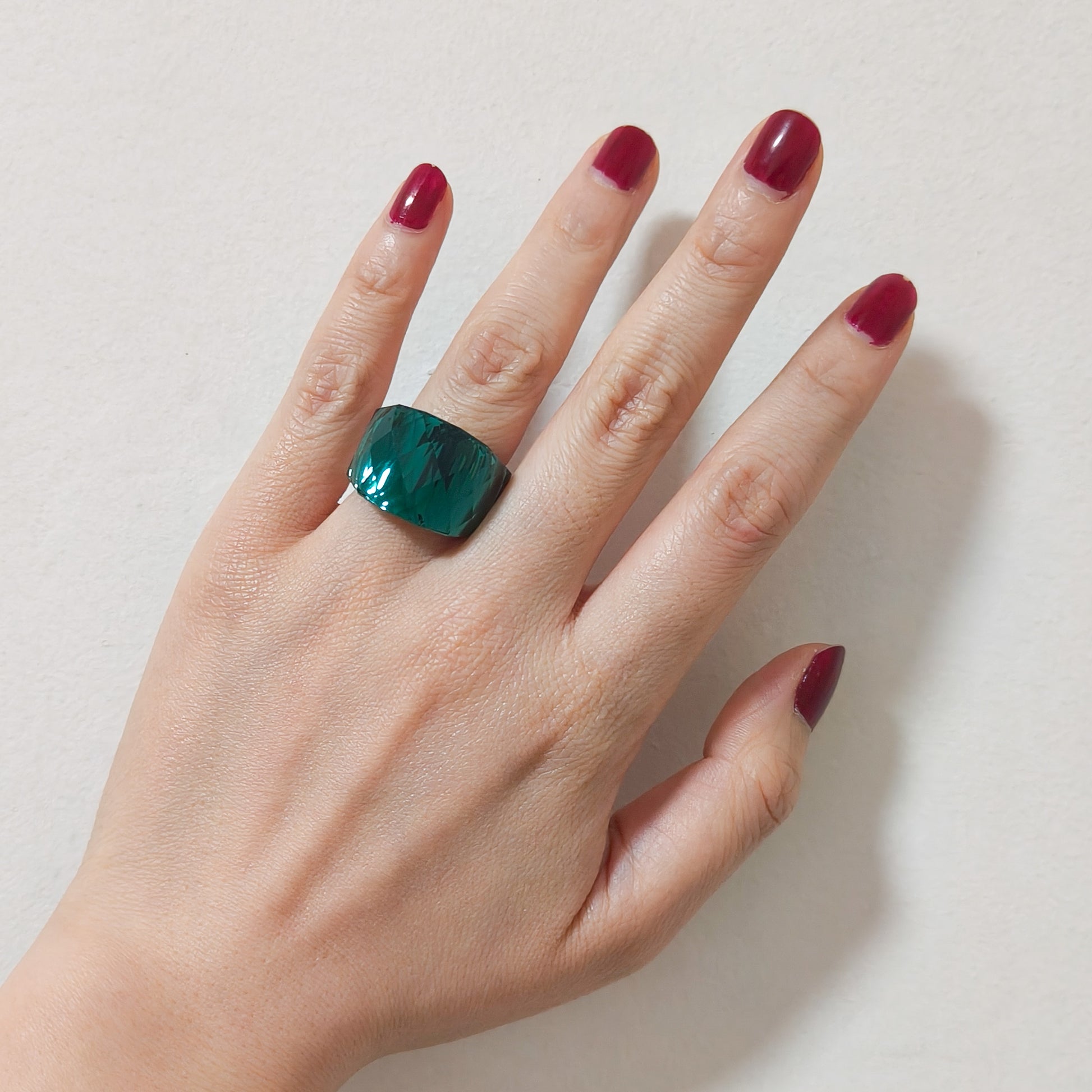 Anillo ancho con pieza central facetada de fantasía que crea destellos increíbles cuando recibe luz.