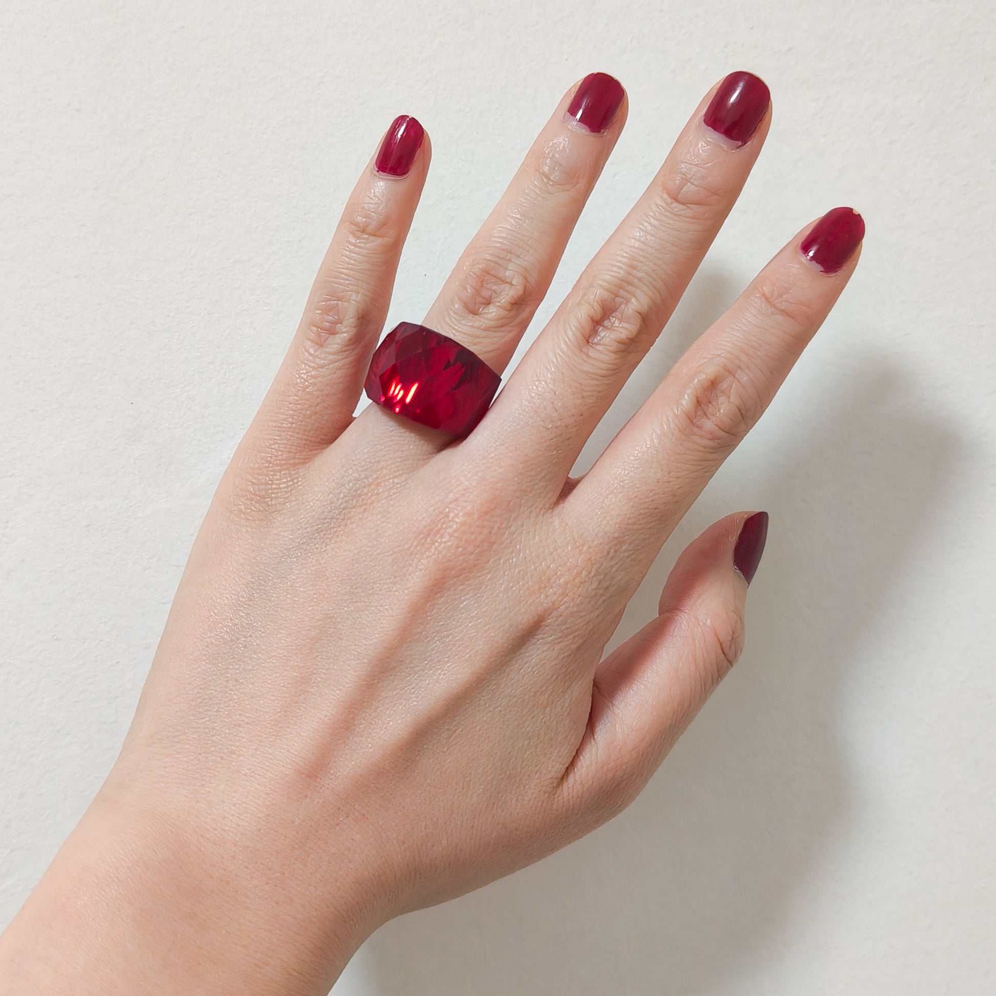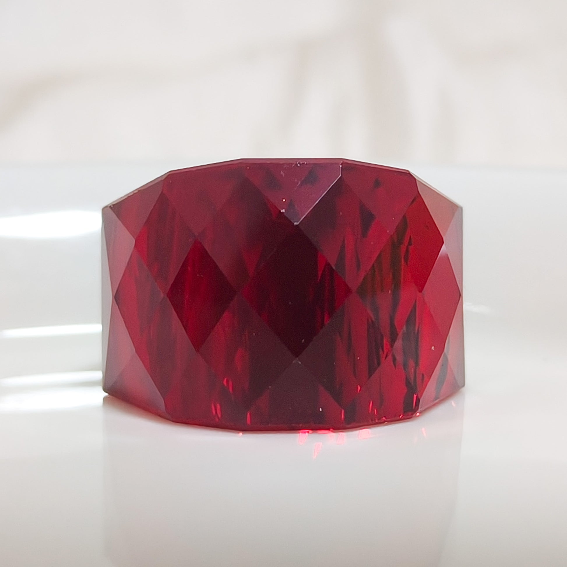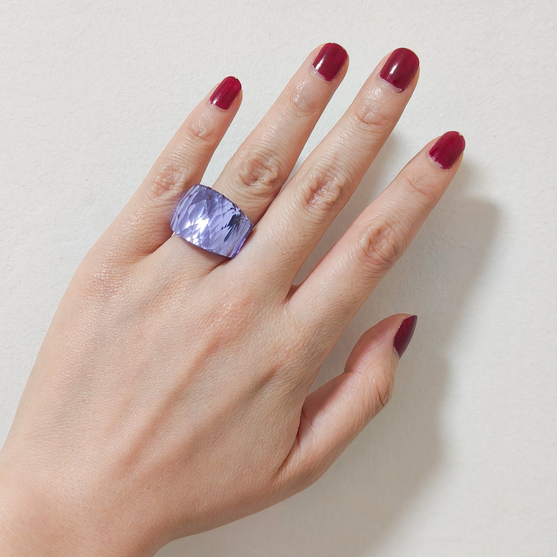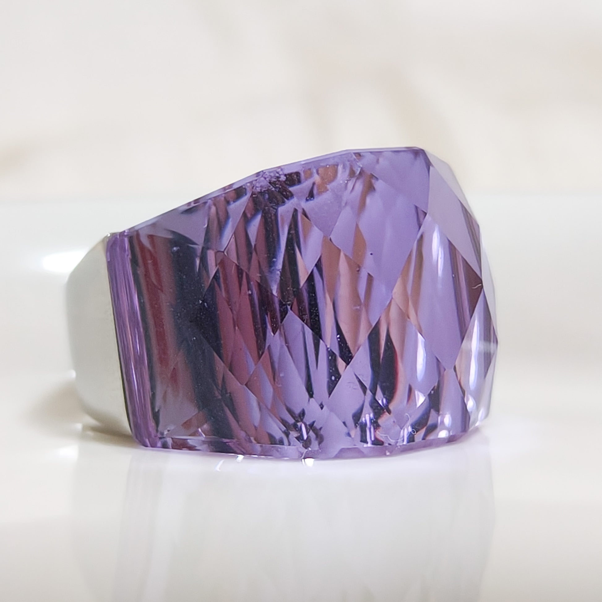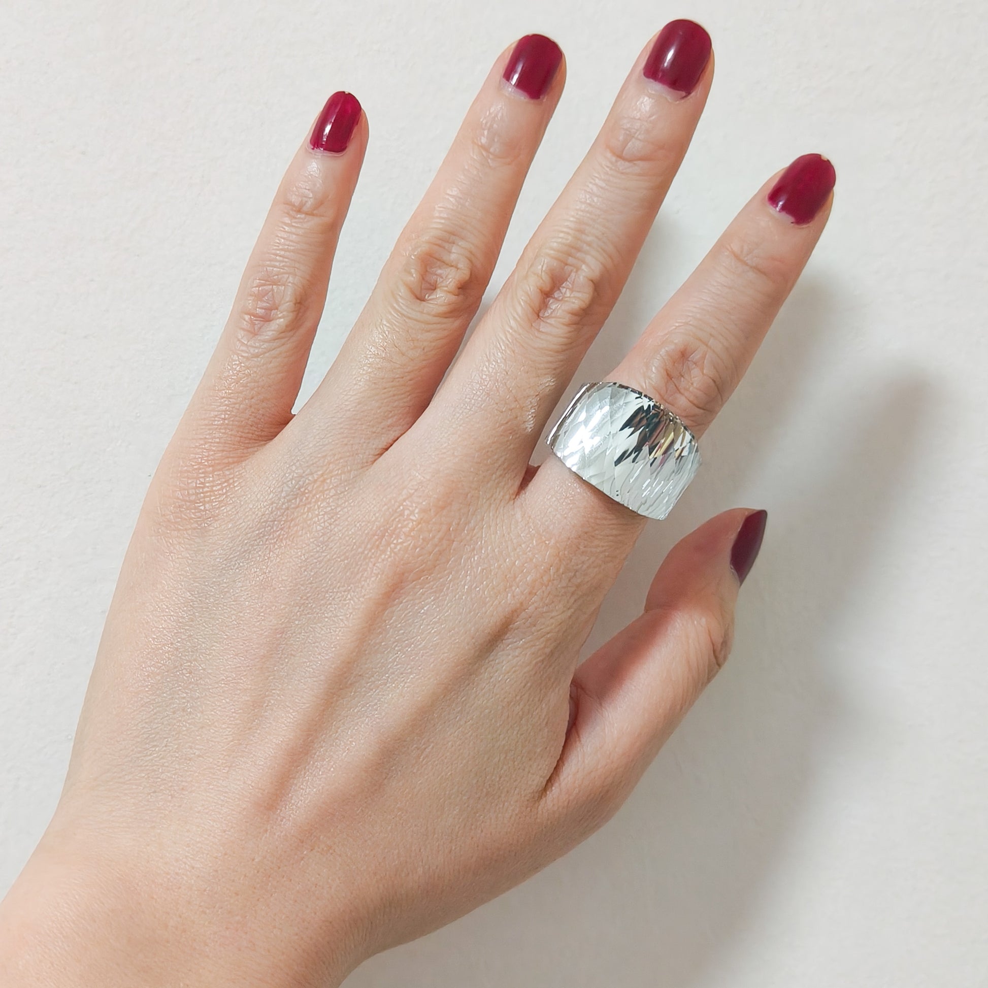 Anillo ancho con pieza central facetada de fantasía que crea destellos increíbles cuando recibe luz.