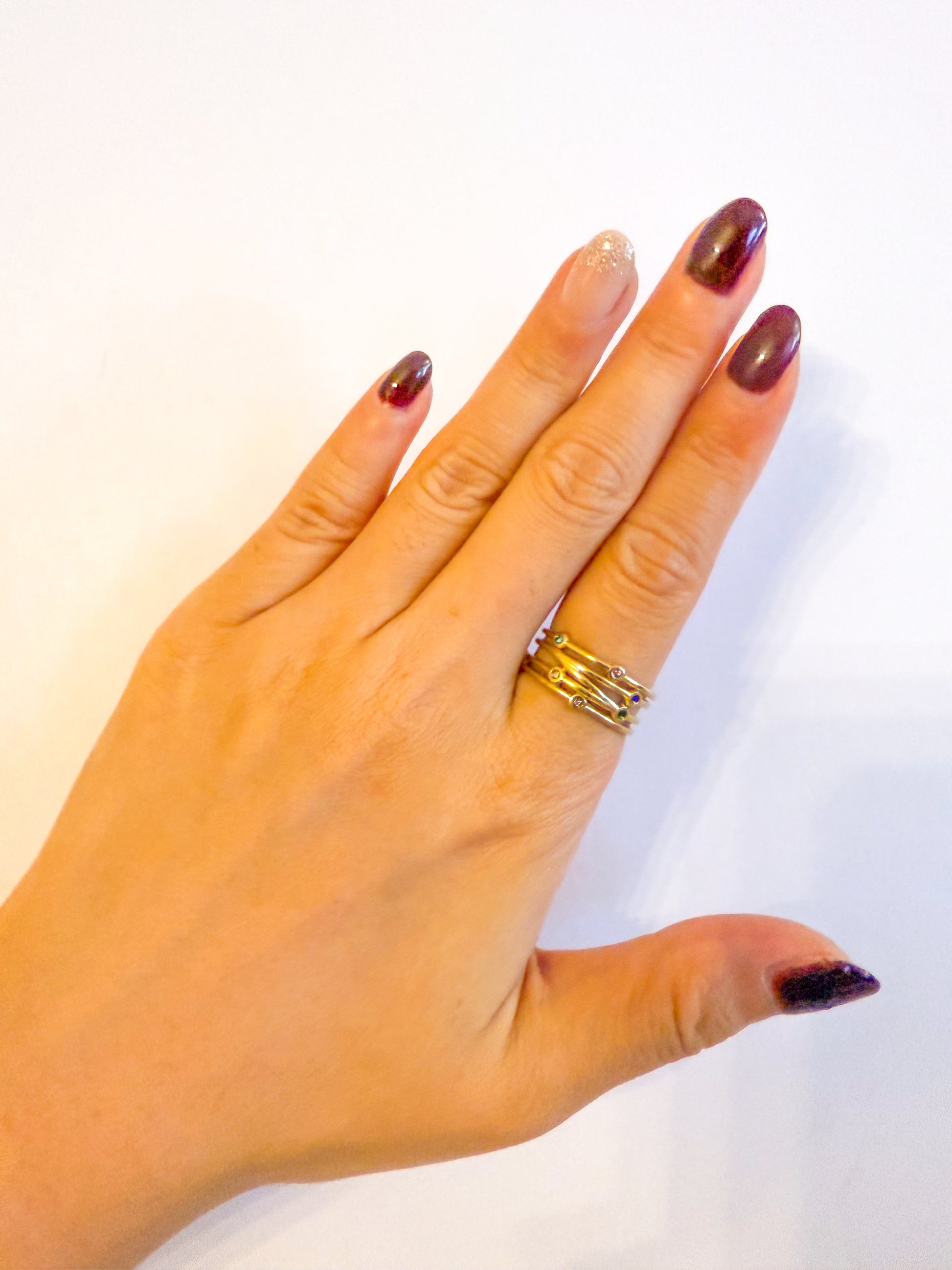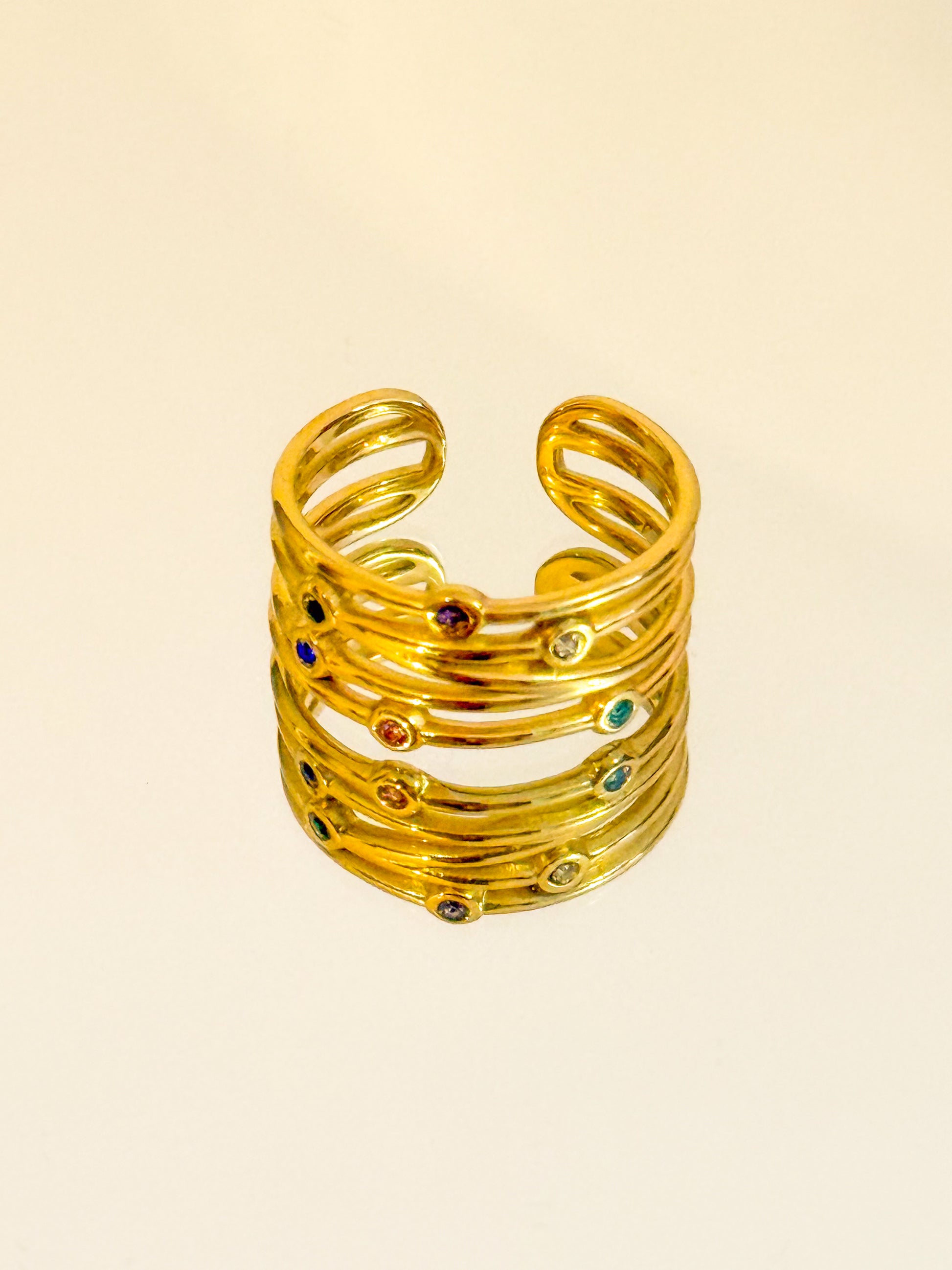 Un anillo lleno de energía y luz. Sus pequeñas piedras de colores representan alegría, esperanza y diversidad. Perfecto para aportar color a tus días sin perder la elegancia.