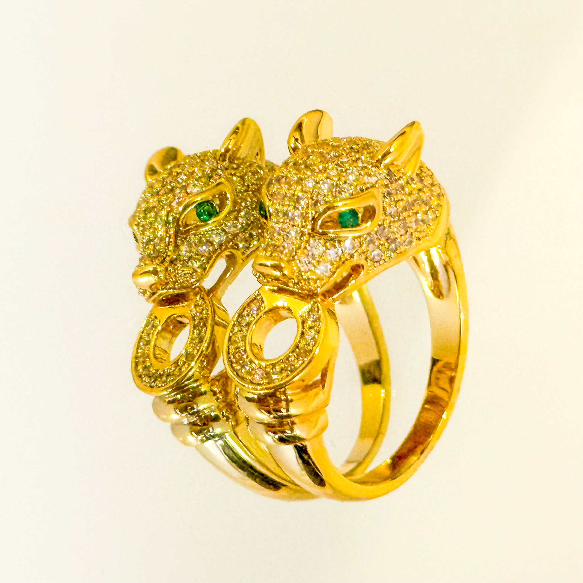 Anillo Jaguar Esmeralda (Dorado con brillo intenso)