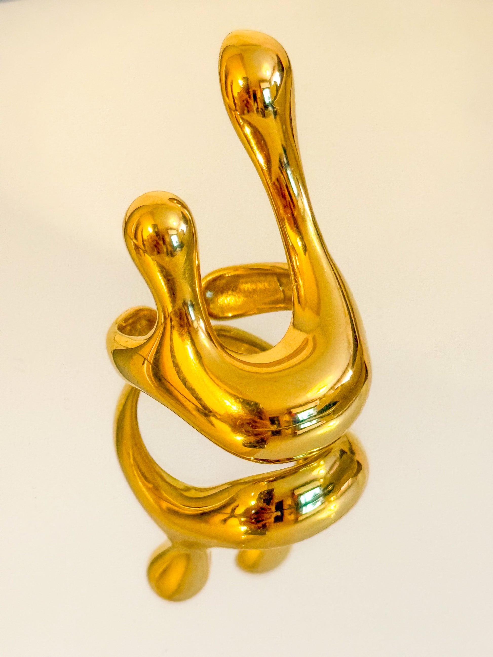 Anillo de líneas fluidas y diseño orgánico. Su forma curvada evoca el movimiento de una ola, moderno y elegante.