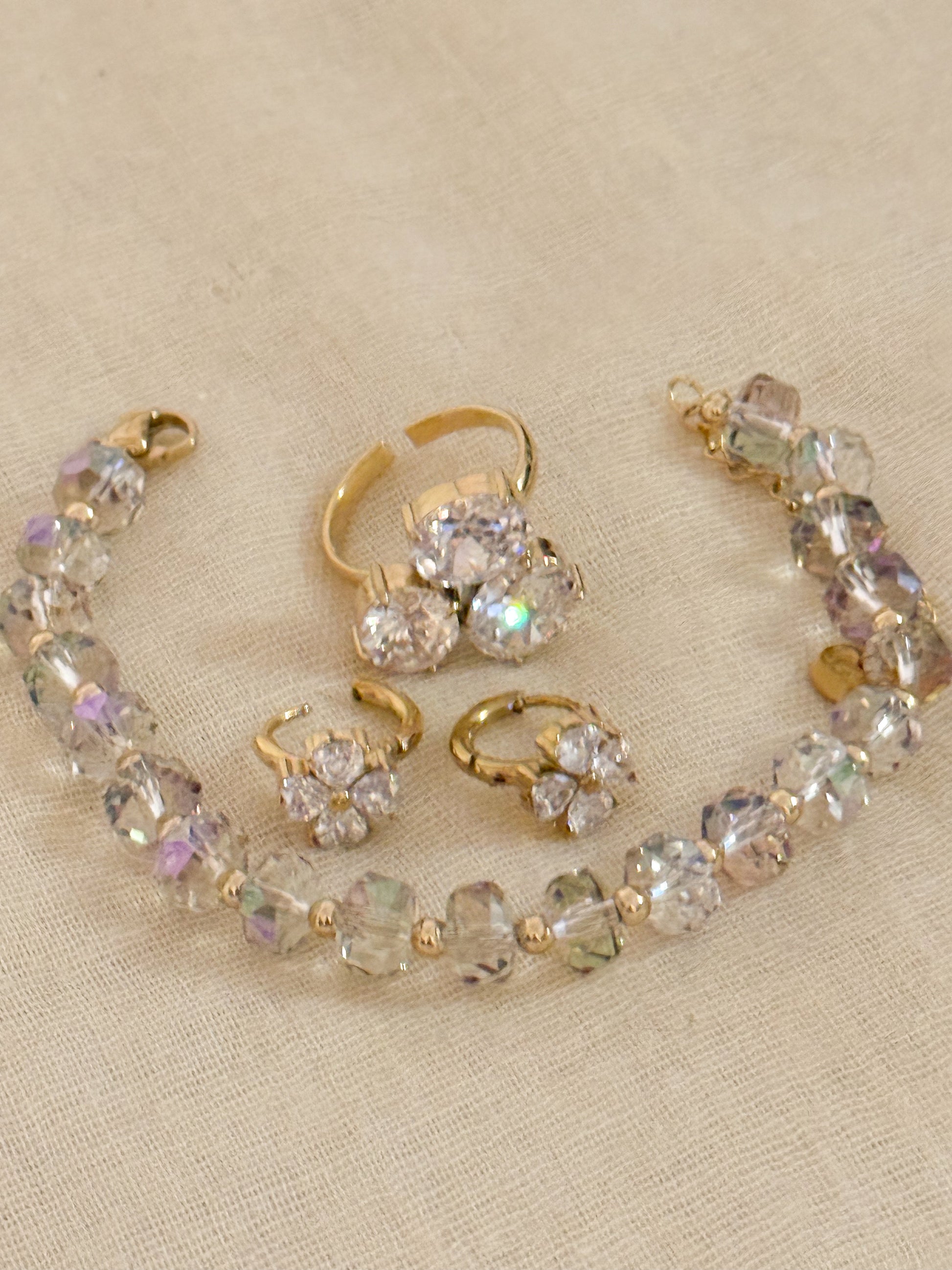 Un diseño luminoso y sofisticado: varias circonitas de corte brillante se unen en una composición equilibrada que capta la luz desde todos los ángulos.