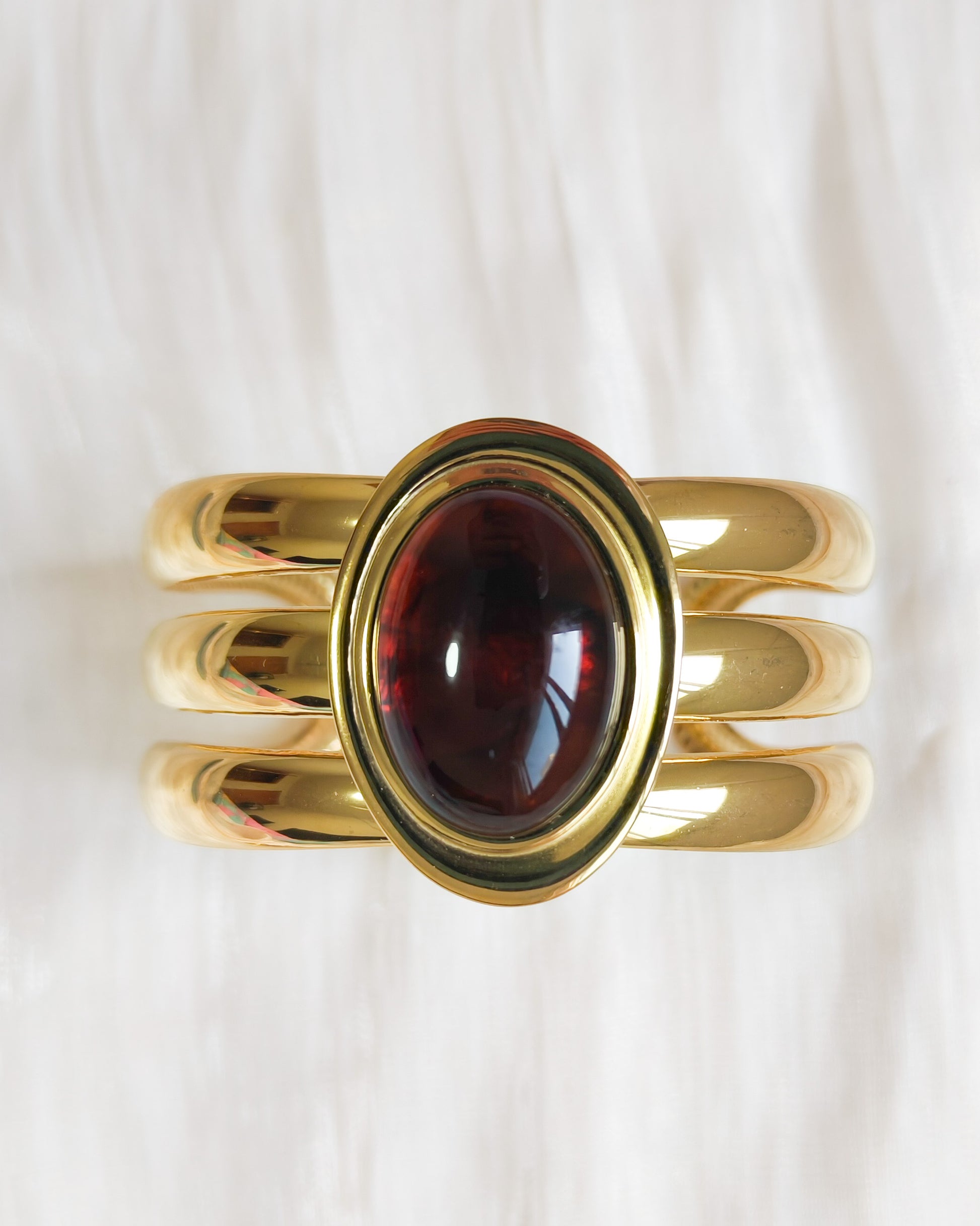 - Diseño de tres aros con óvalo central marrón que estiliza la muñeca al instante.