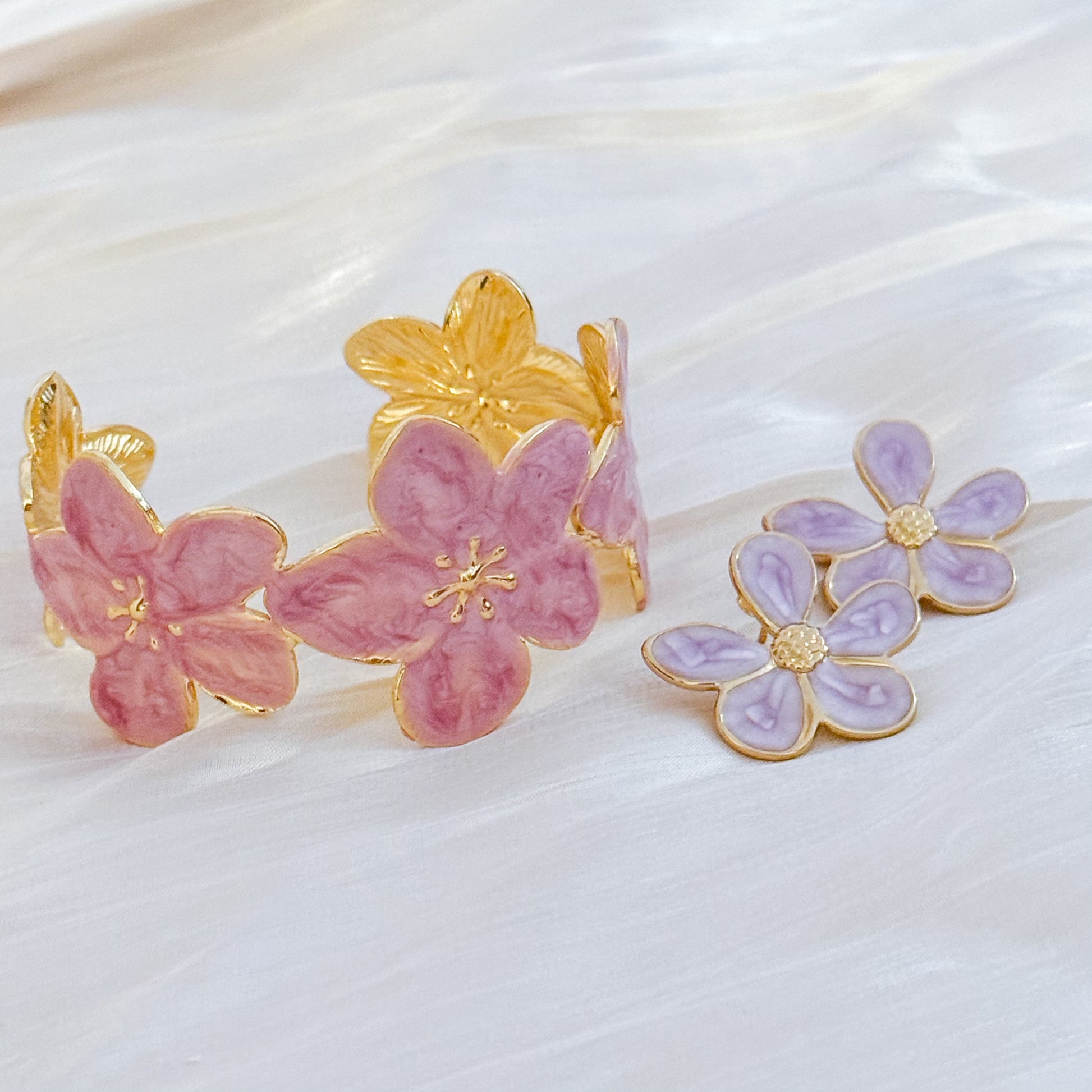 Las flores esmaltadas en tonos rosa suave y dorado aportan dulzura, elegancia y un aire primaveral al diseño.