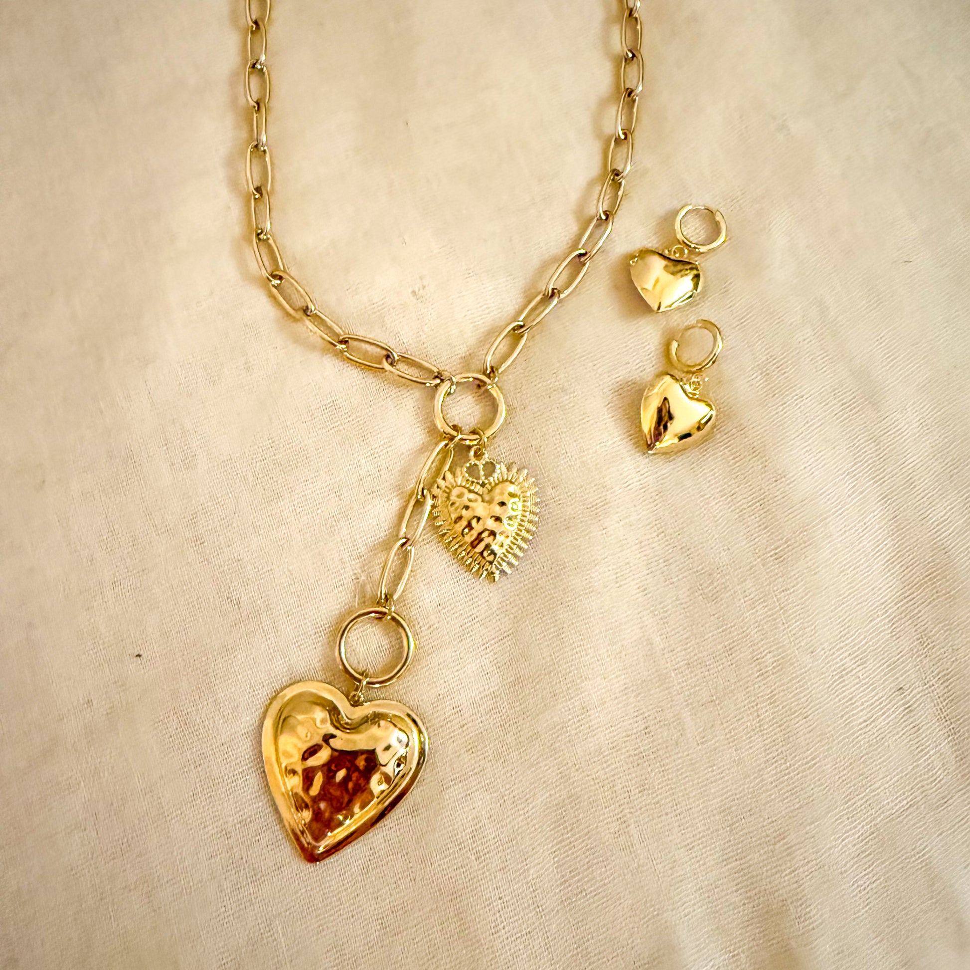 Un collar elegante y lleno de intención, protagonizado por un corazón dorado de acabado brillante con textura sutil que refleja la luz de forma natural.