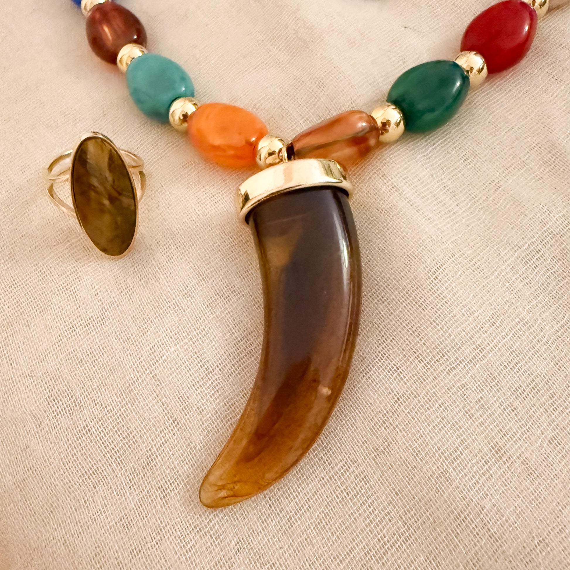 Collar Origen Tribal (Cuerno Ámbar Multicolor)