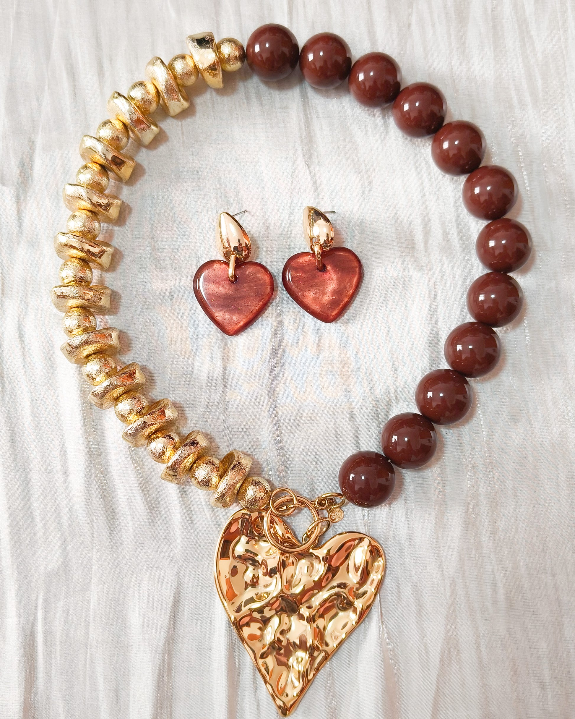 • Abalorios XL y dije de corazón martillado que roba miradas.