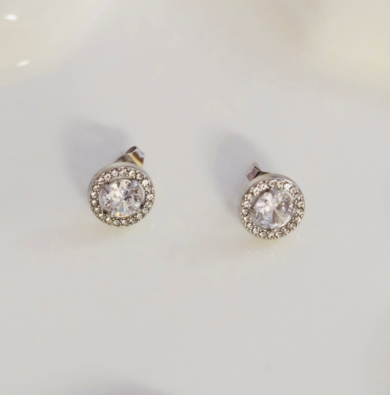 Conjunto 4 piezas clasico tenis (collar, pulsera, pendiente y anillo ajustable), Acero Innoxidable, sería ALTA GAMA