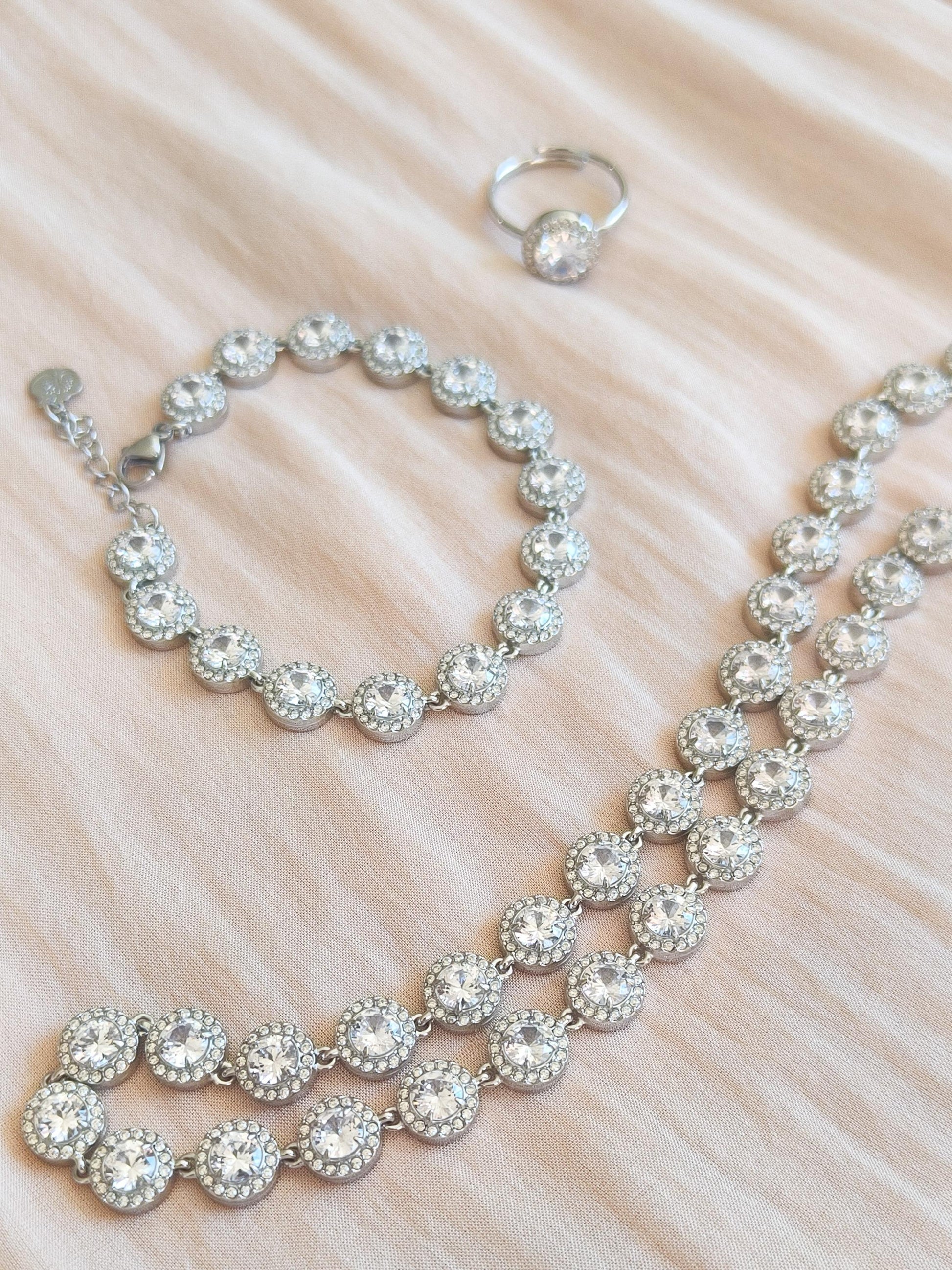 Look 4 piezas clasico tenis (collar, pulsera y anillo)