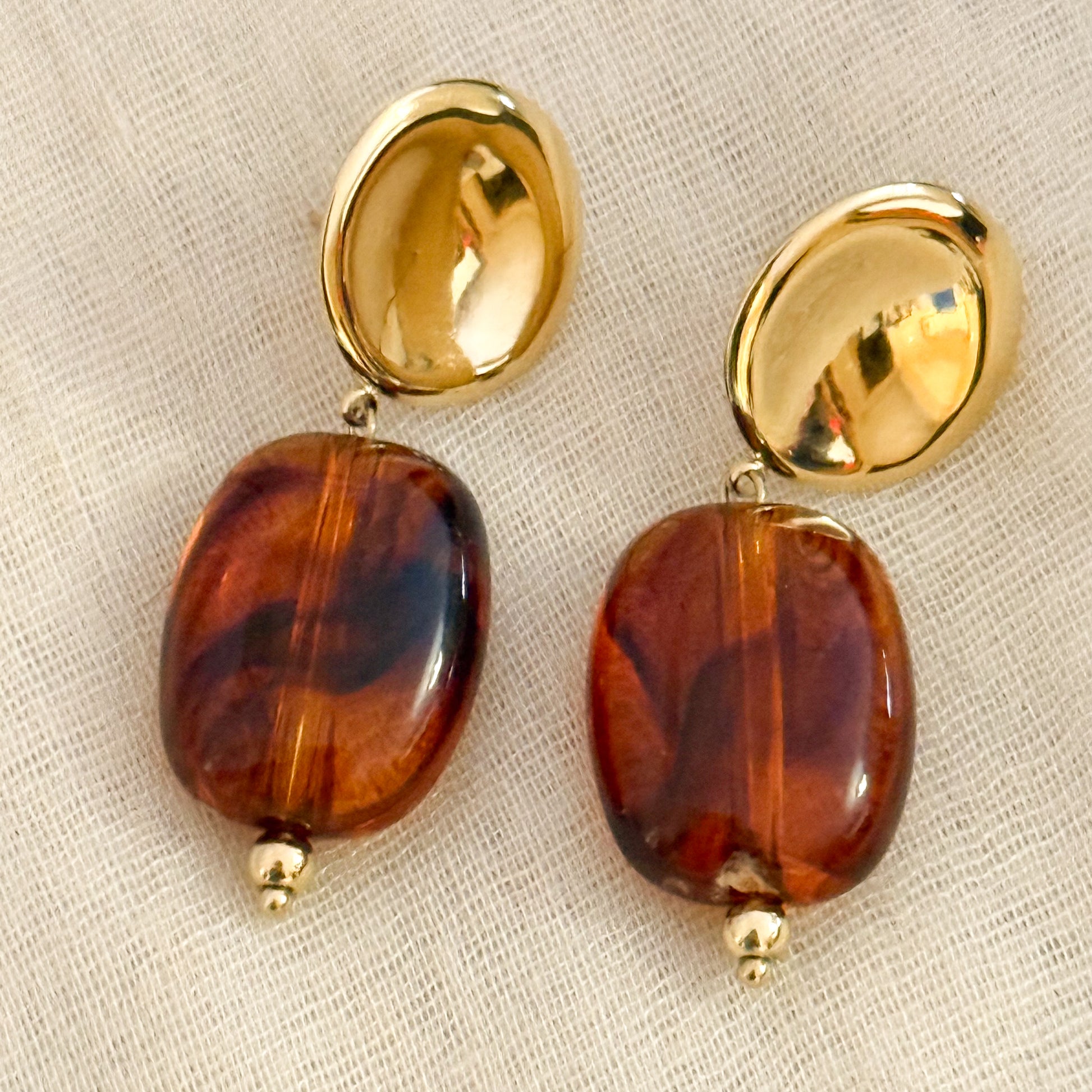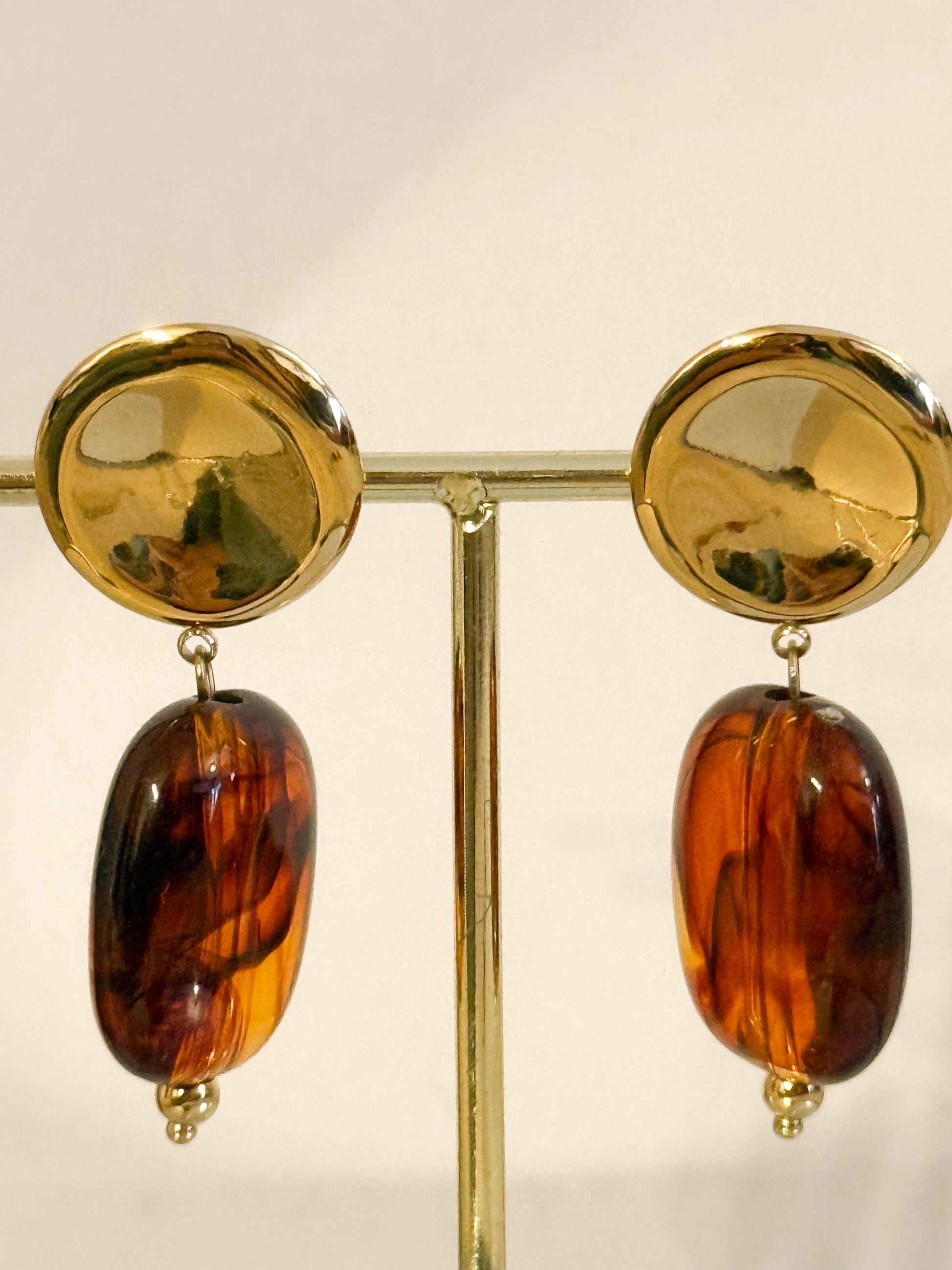 Los pendientes con acabado brillante y el collar con piezas ovaladas crean un equilibrio entre lo moderno y lo natural — una joya que nunca pasa de moda.