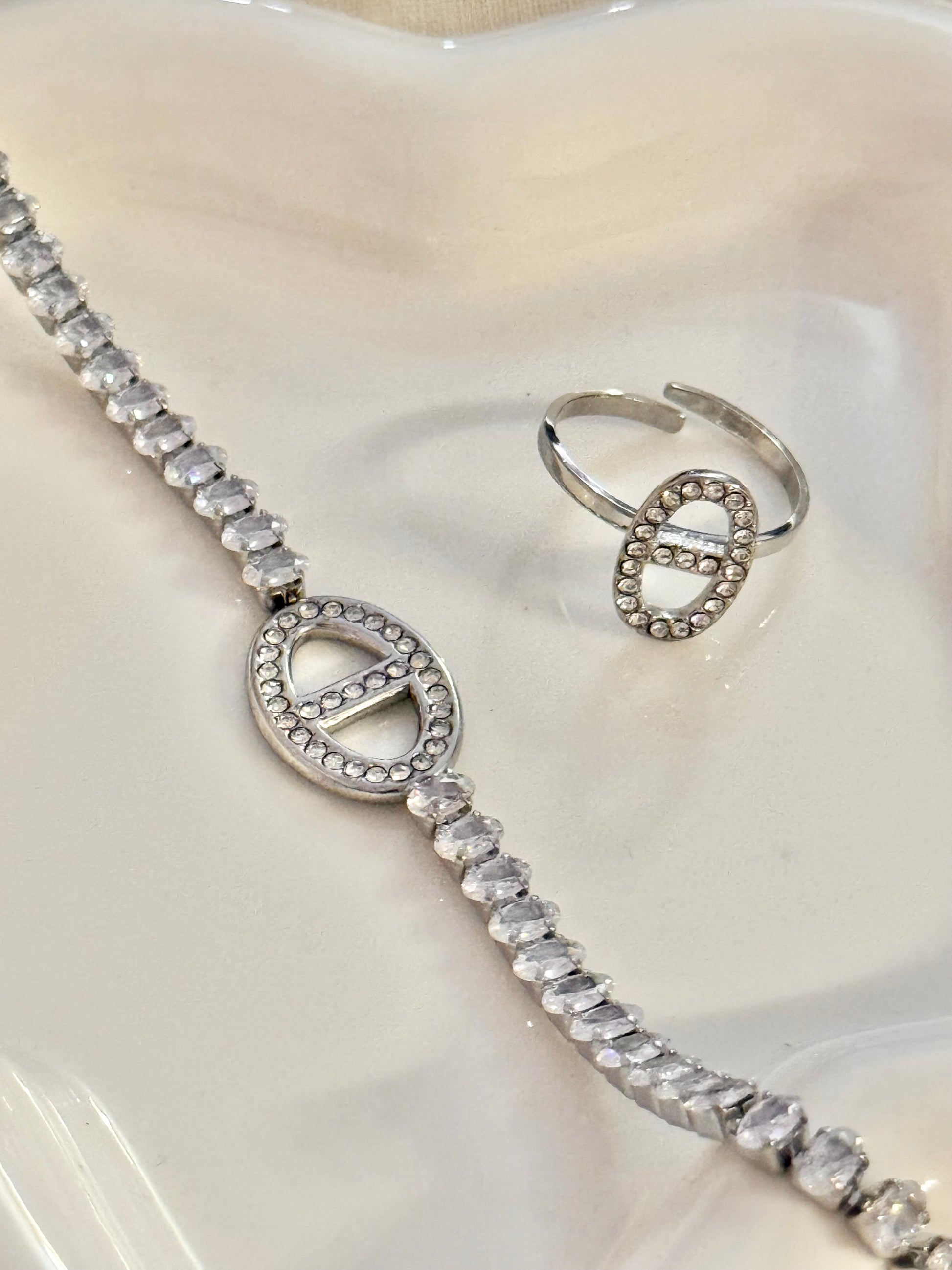 Conjunto COLLAR Y ANILLO en acero inoxidable: resistente, hipoalergénico y con brillo duradero que no se desvanece.