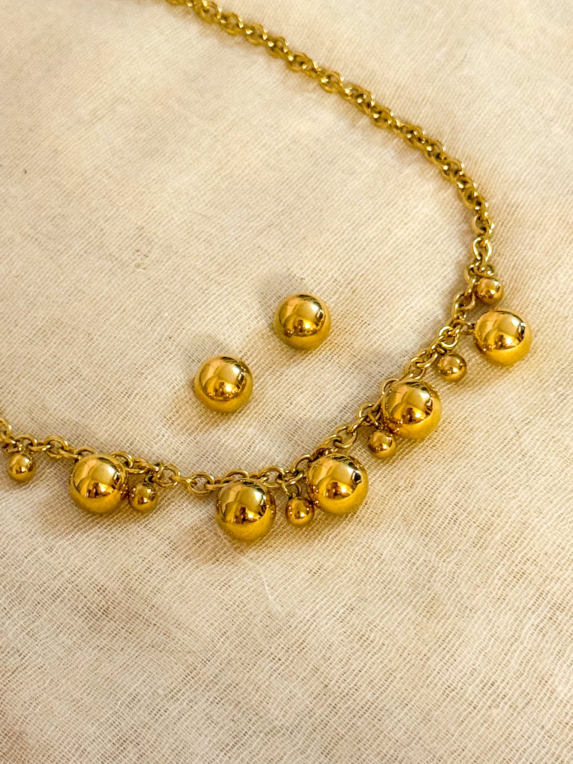 Look Elin(collar bolita+ pulsera + pendiente bolita)