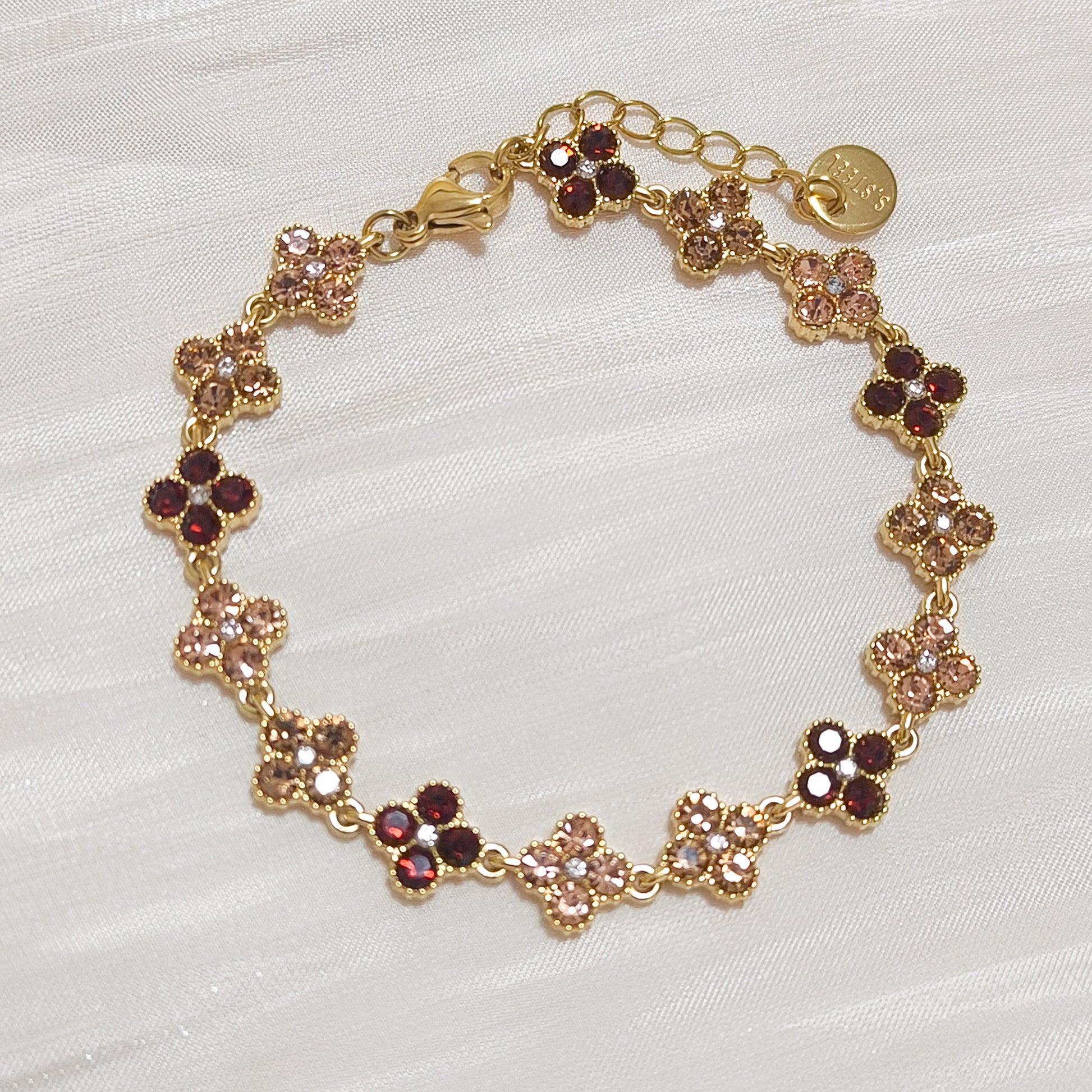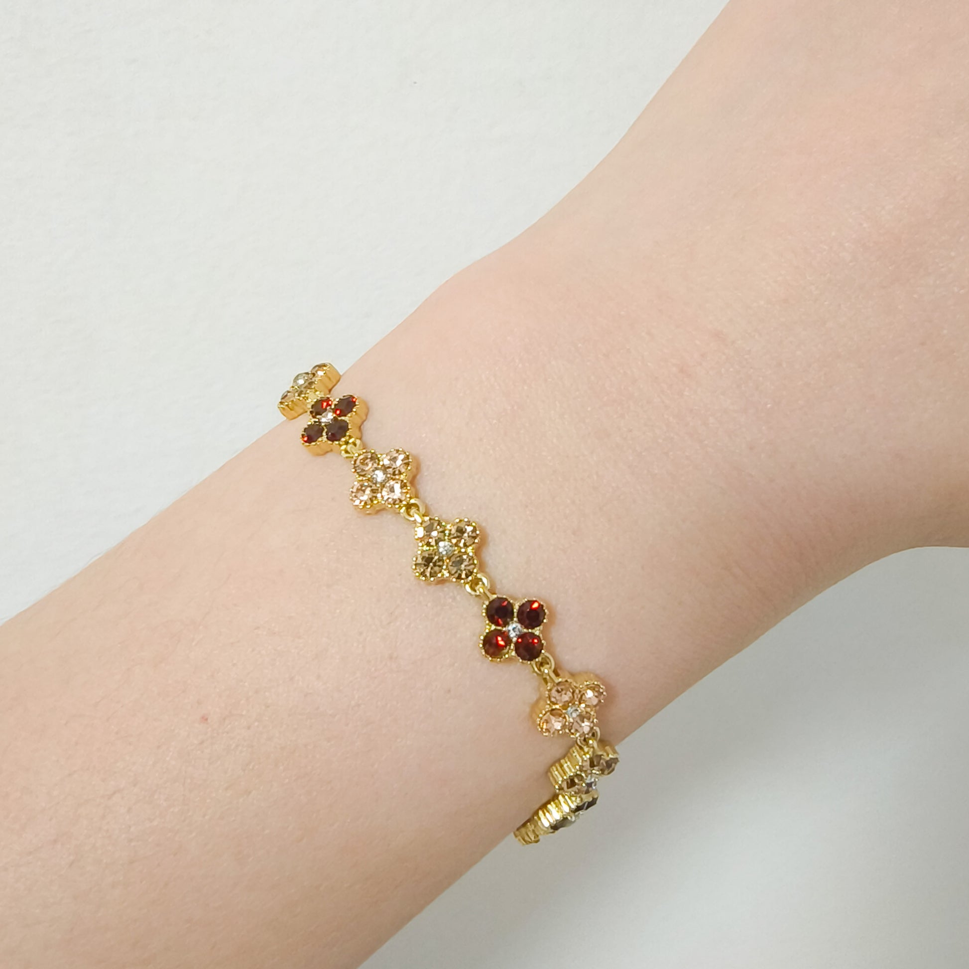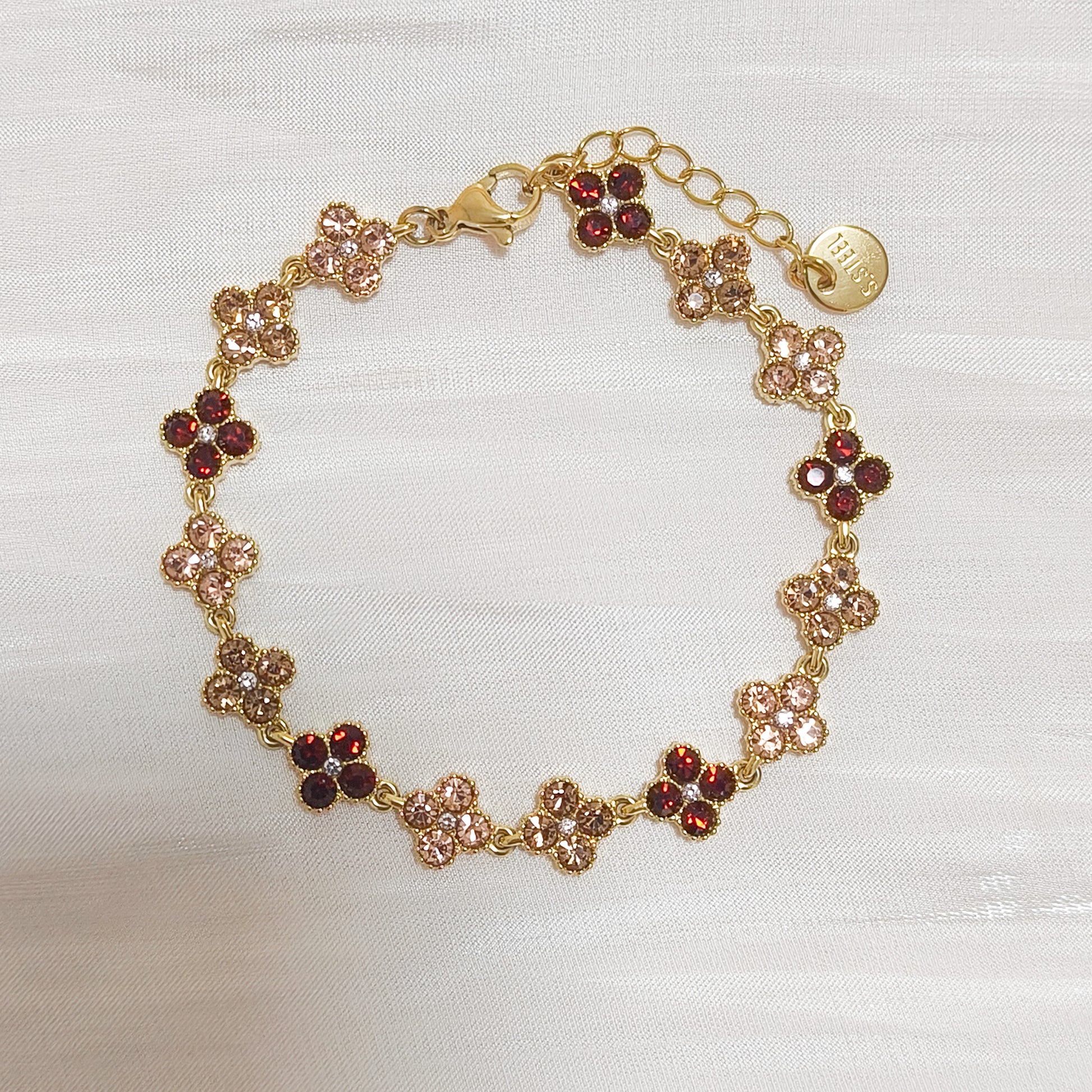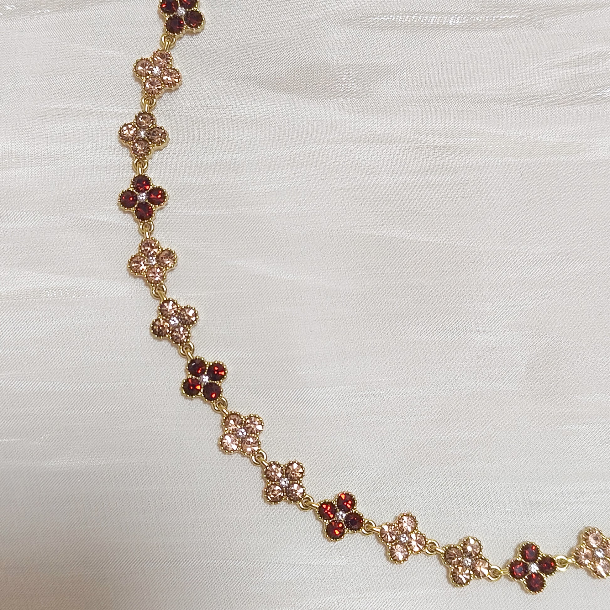 - Collar corto y pulsera lleno de pequeñas flores doradas con cristalitos rojos y rosas nudos, delicado y súper brillante.
