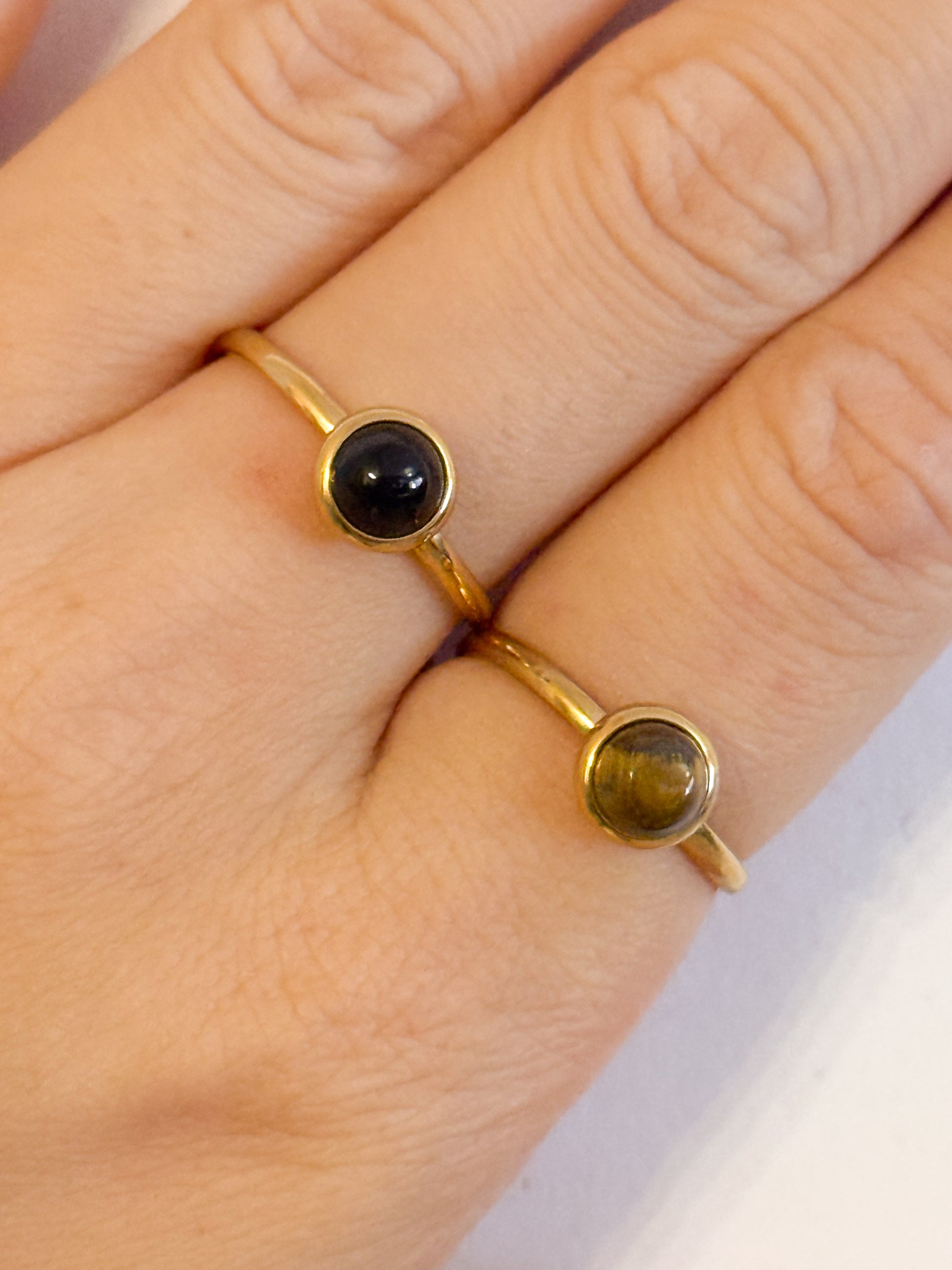 Piedras naturales marrones con detalles en acero inoxidable dorado, hipoalergénico y resistente al agua.