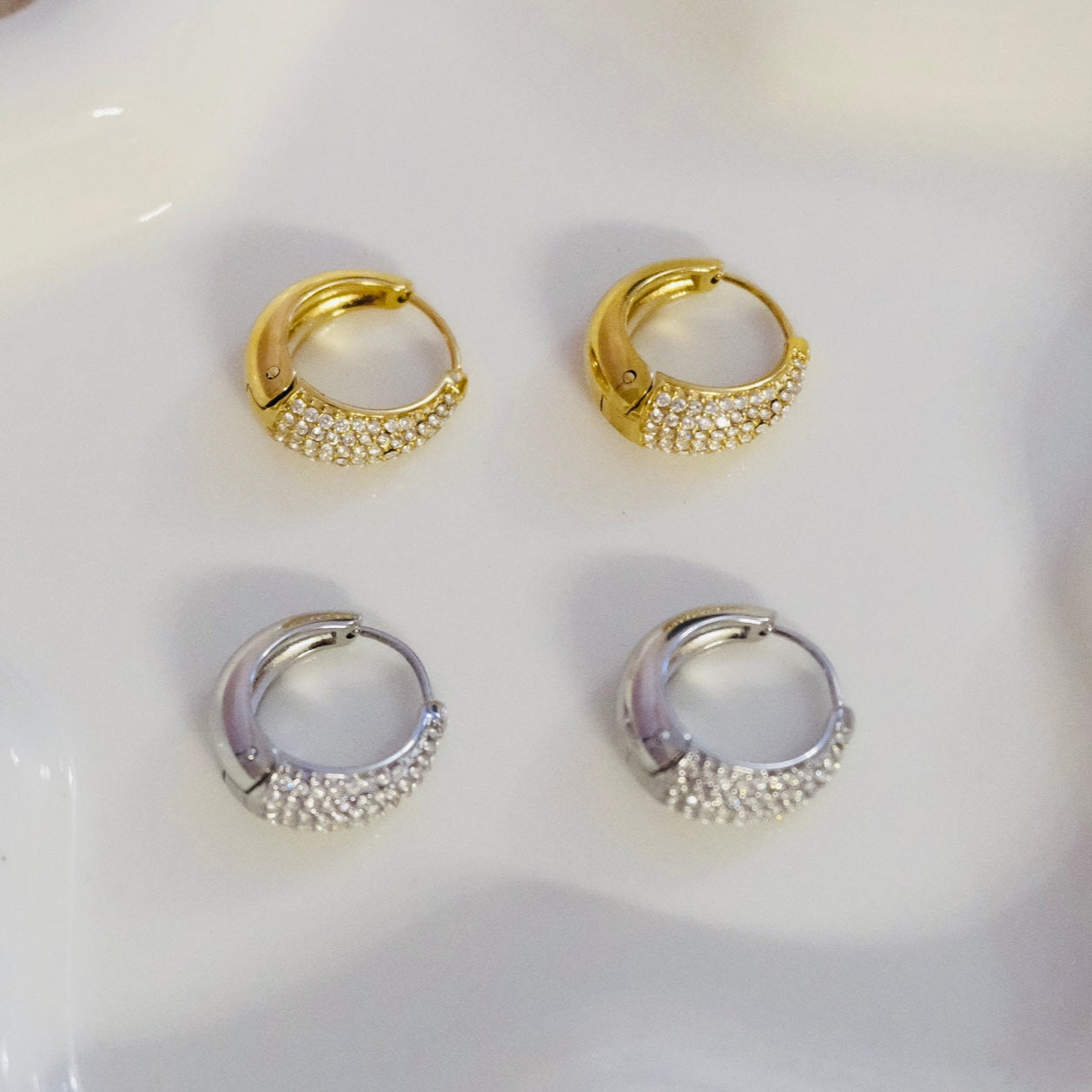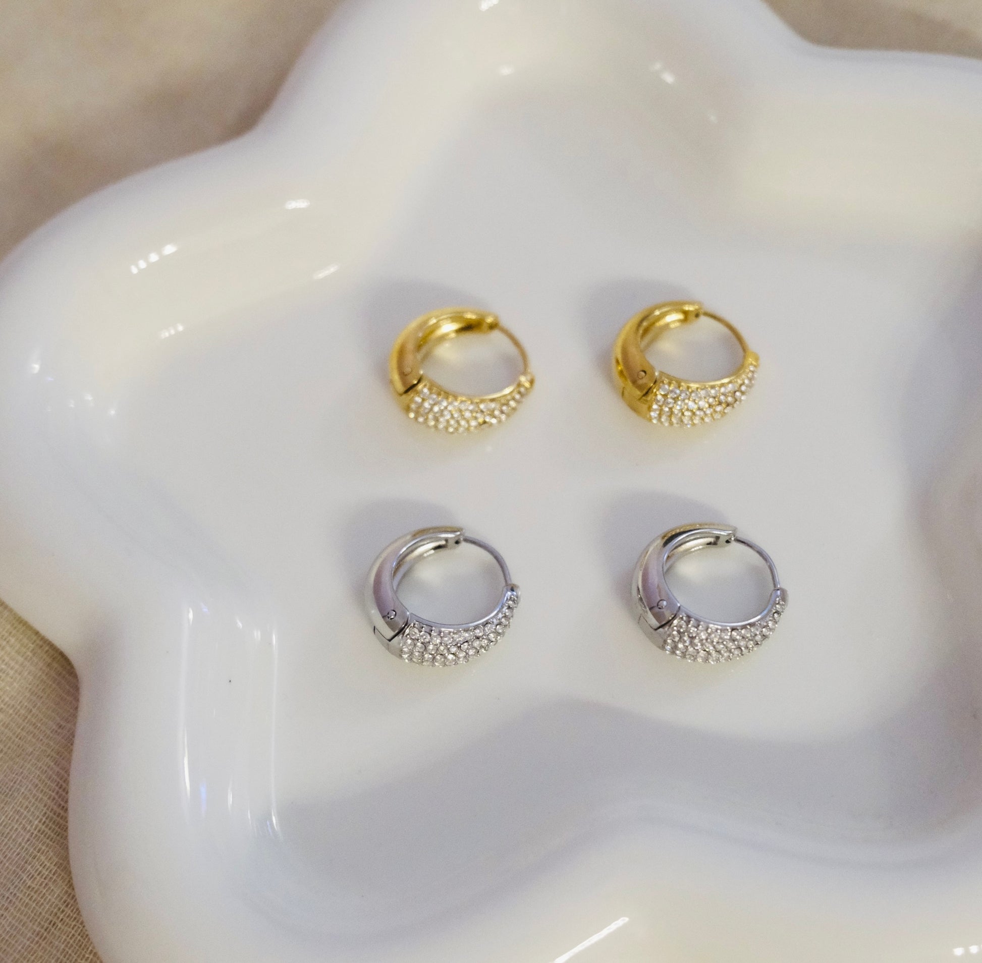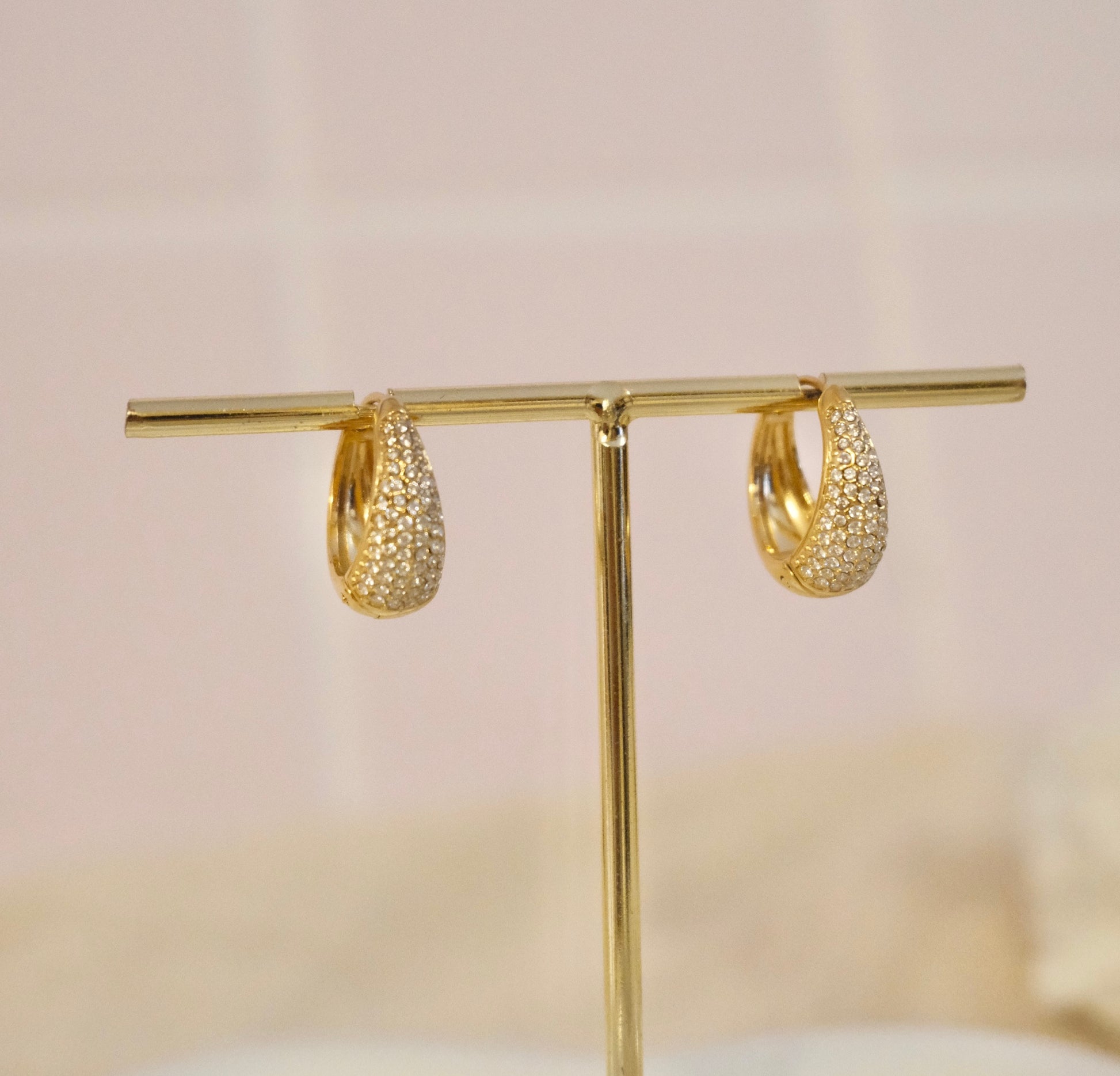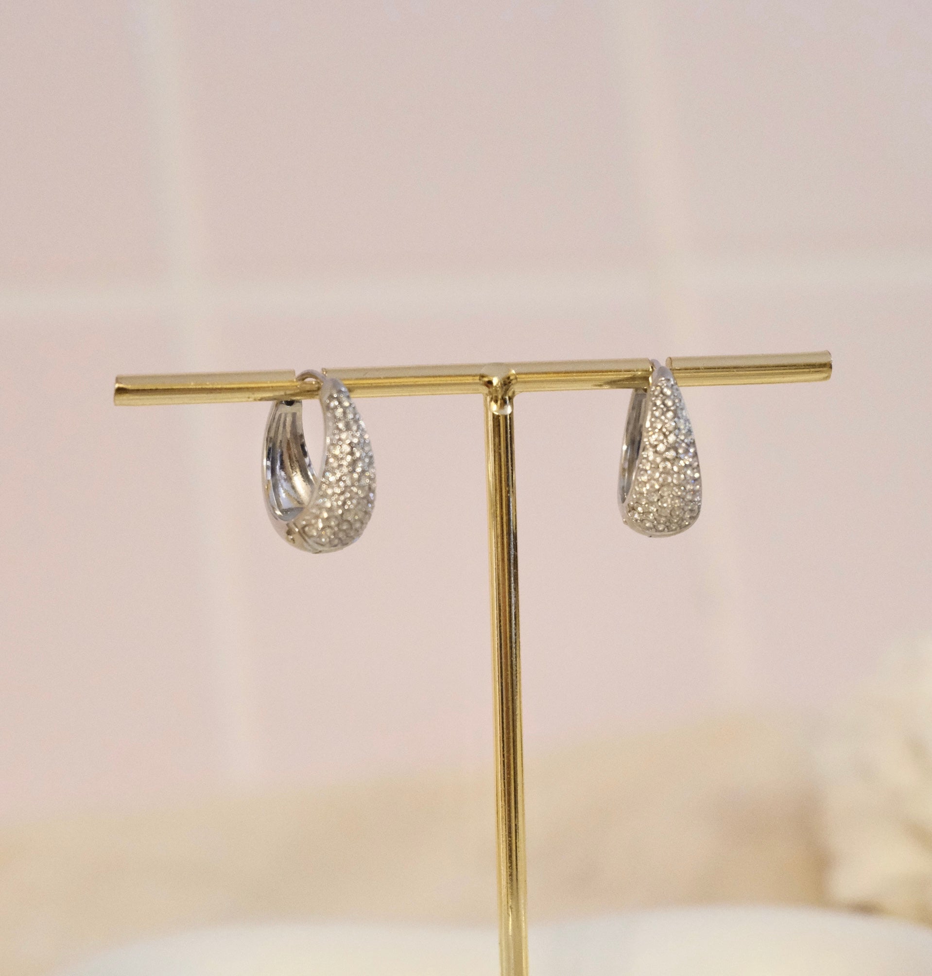 Pendiente Gota con Brillo en plata y dorado, fabricados en acero inoxidable: duraderos, hipoalergénicos y con brillo que no se apaga.