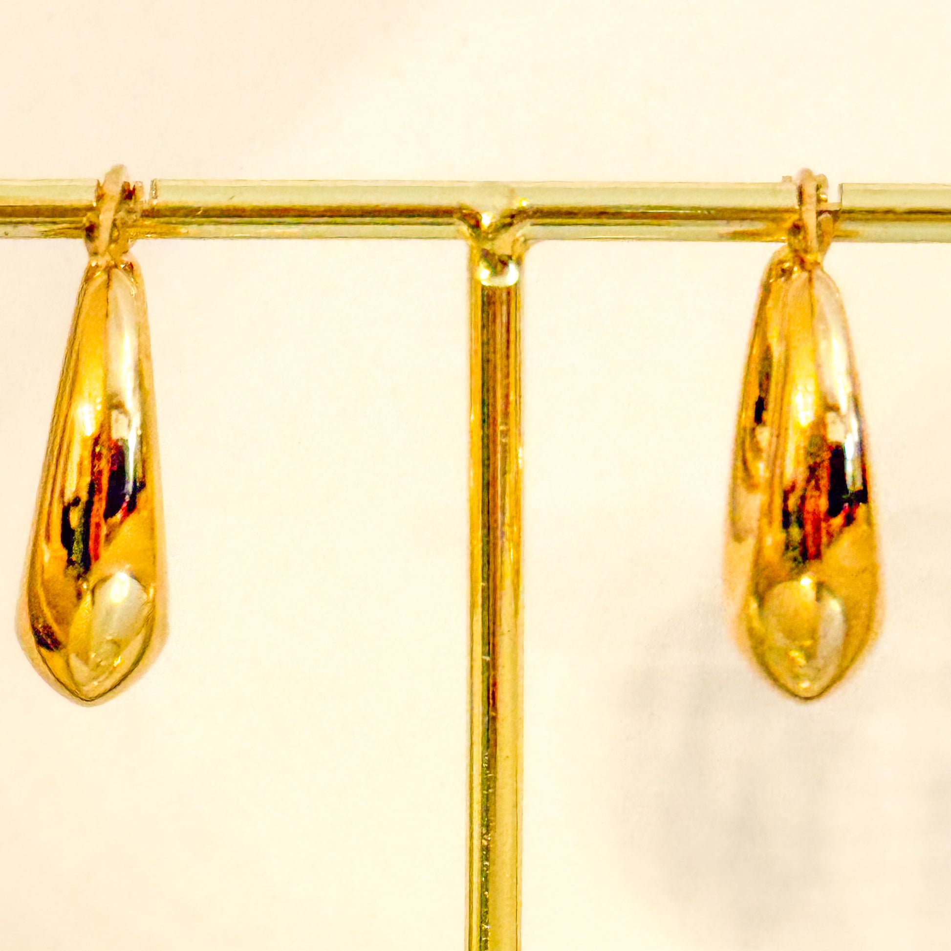 Estos aros dorados envuelven el rostro con un brillo suave y envolvente, como la luz del sol al amanecer.