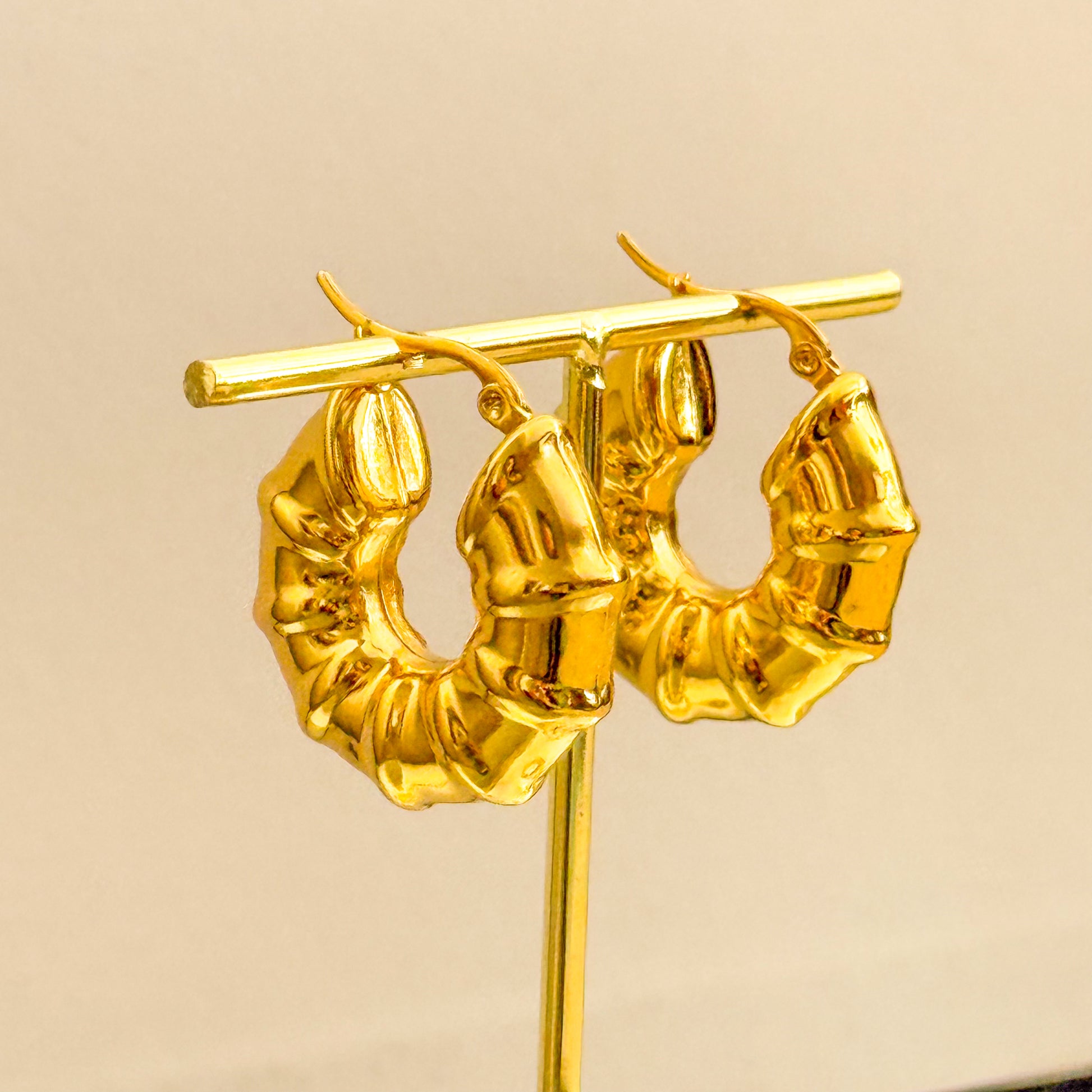 Inspirados en la fuerza y flexibilidad del bambú, estos pendientes dorados aportan un toque artesanal y exótico.