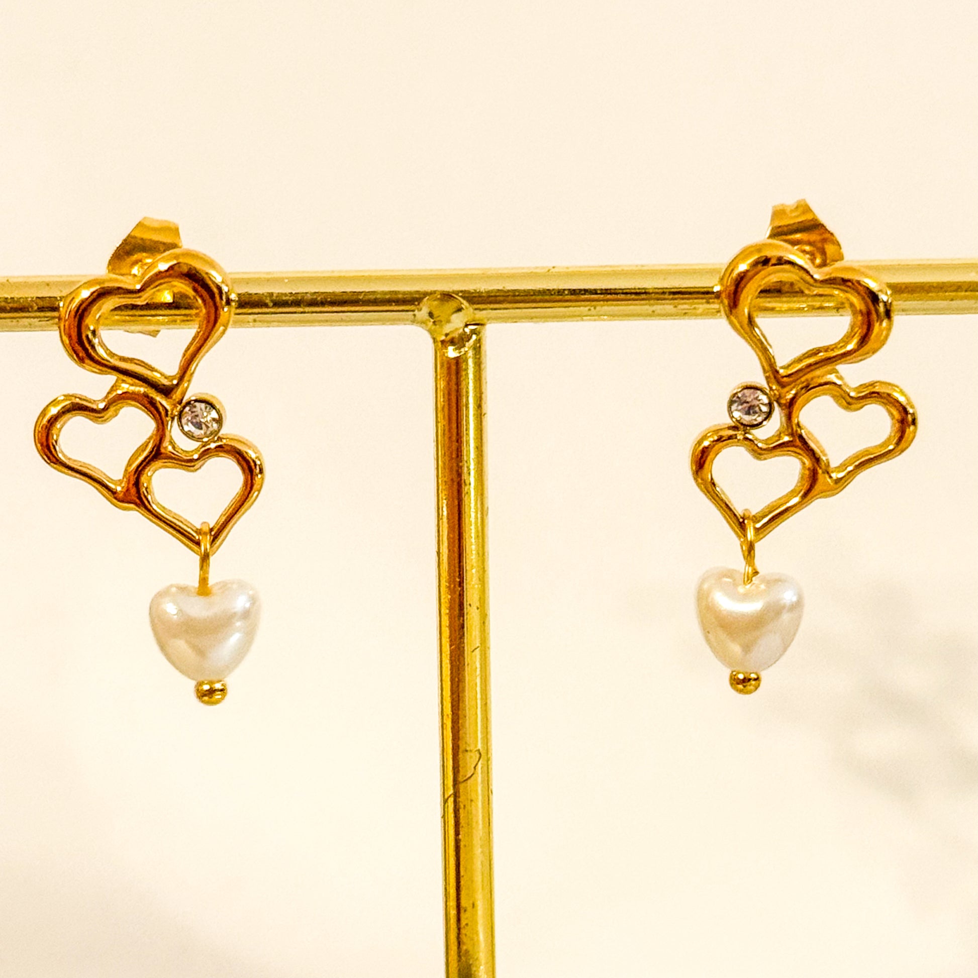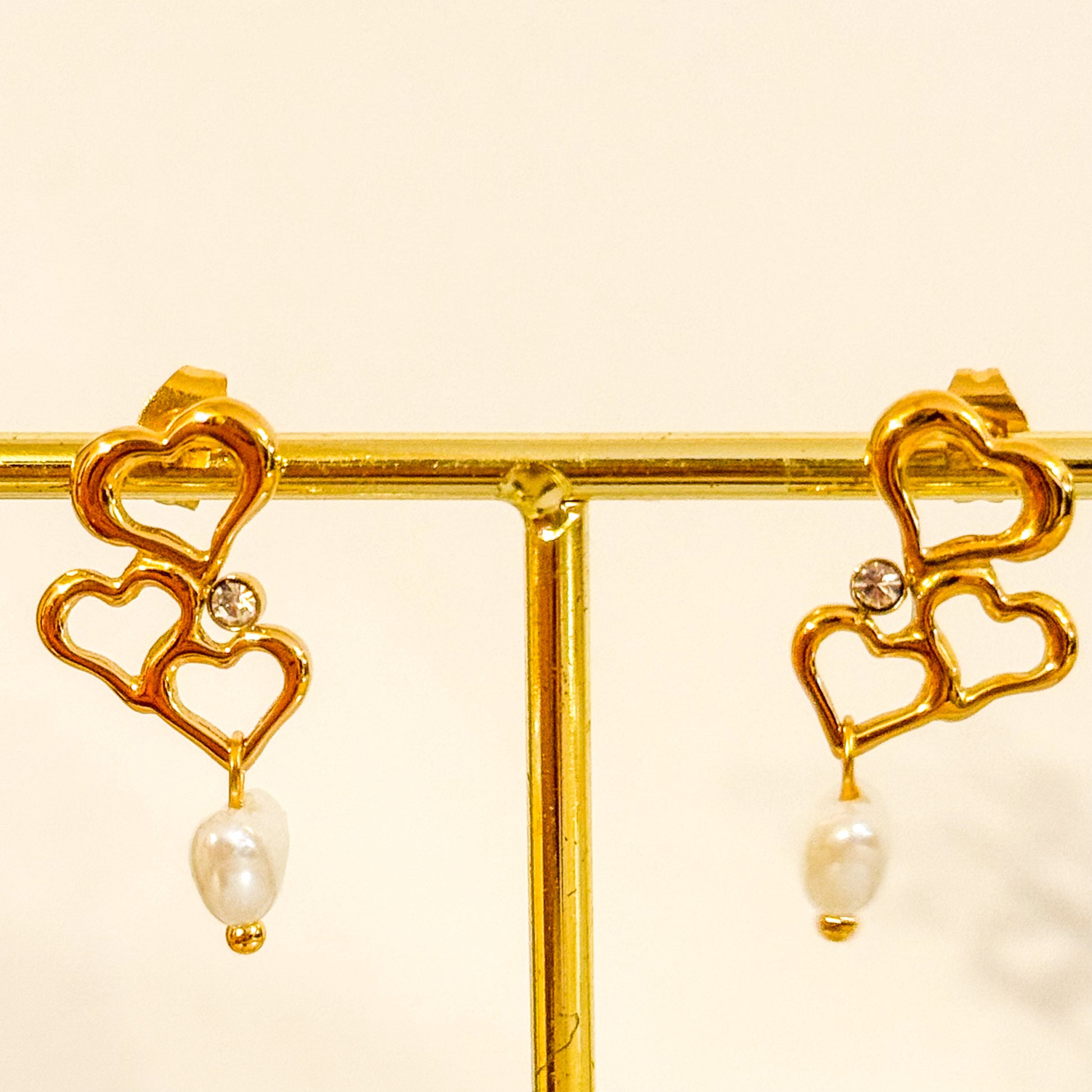 Un diseño dulce y delicado formado por pequeños corazones dorados enlazados, decorados con una mini perla que aporta luz y elegancia.