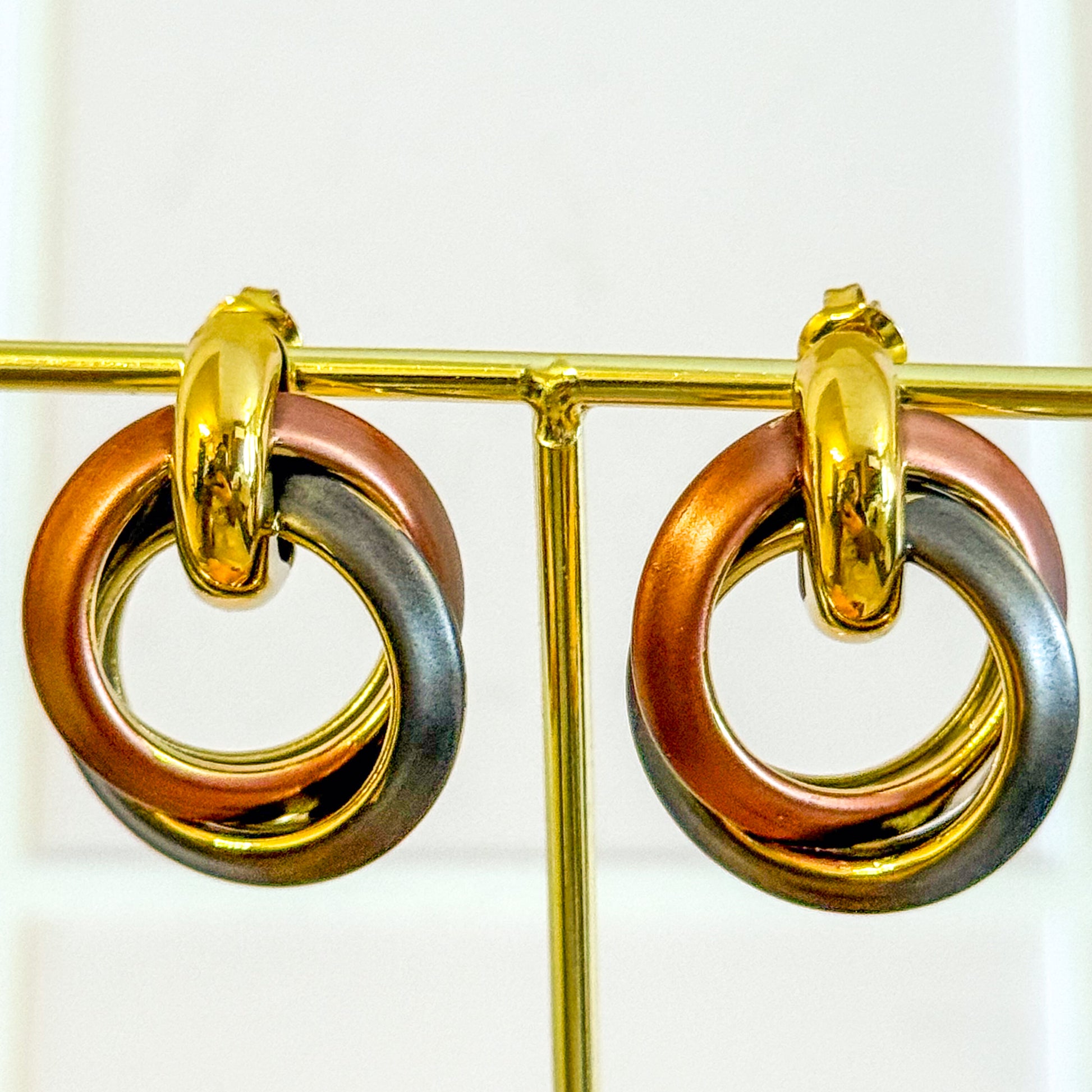 Descripción: Pendientes circulares con mezcla de tonos metálicos que aportan sofisticación y armonía.