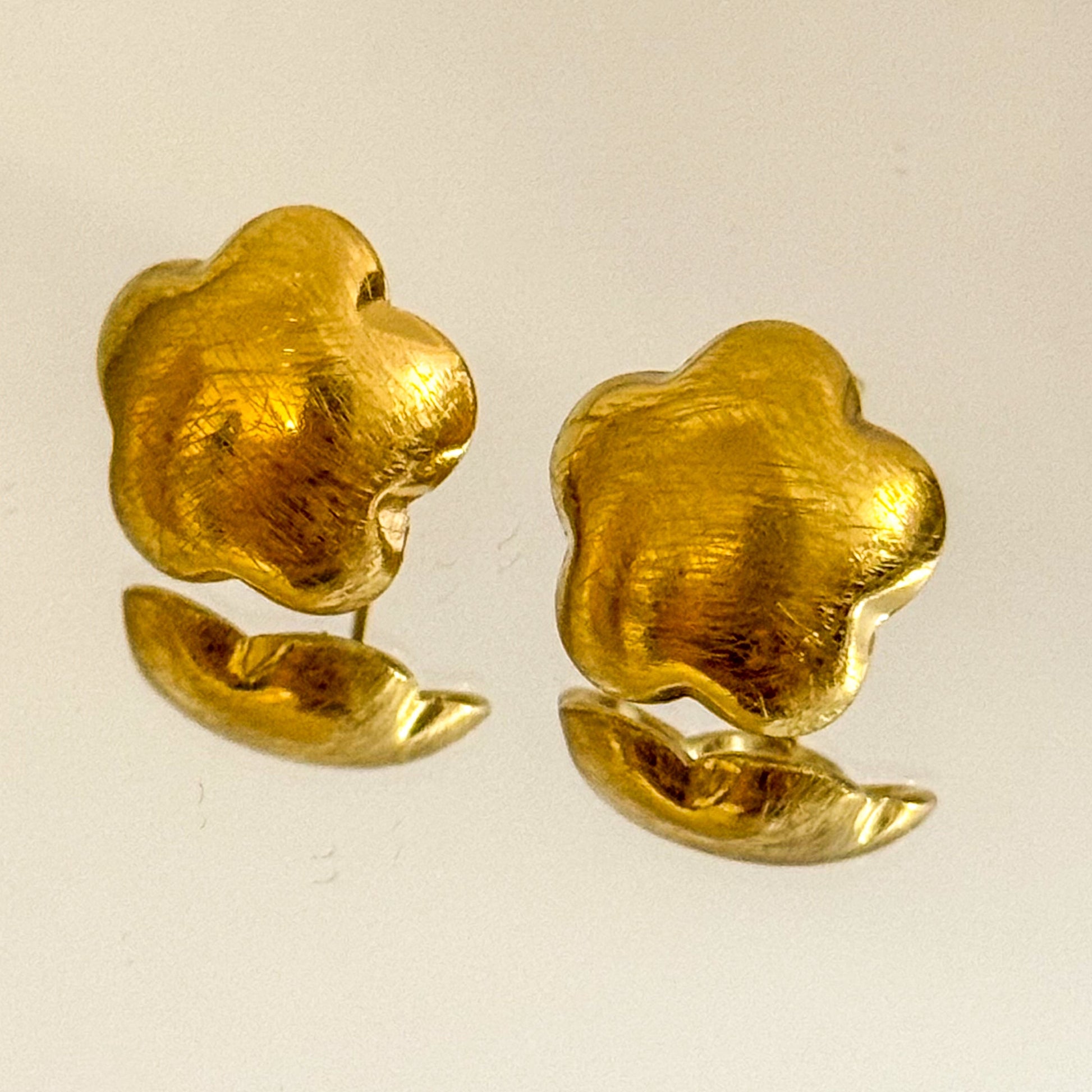 Un pendiente pequeño y minimalista con diseño de flor satinada. Elegantes, discretos y perfectos para uso diario.