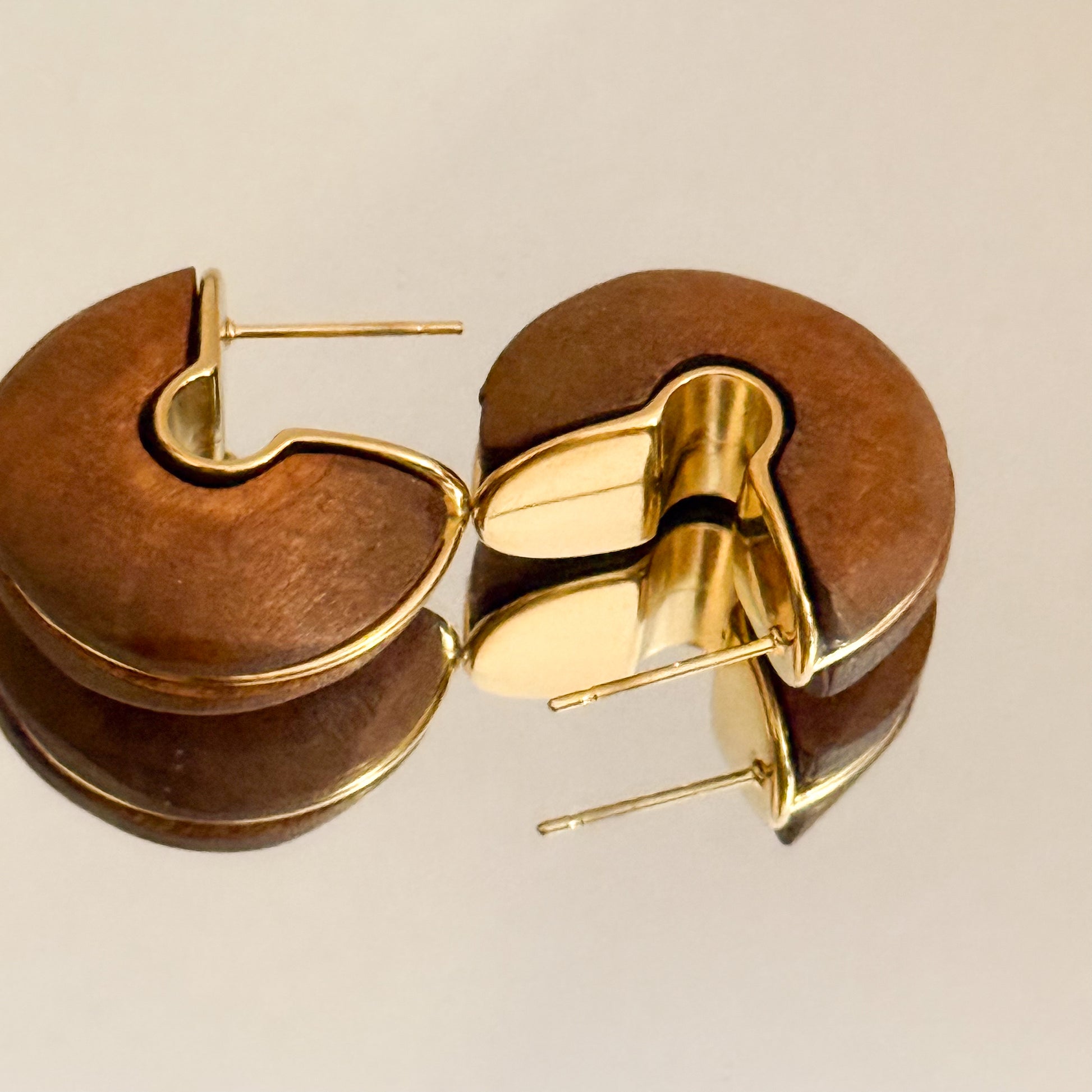 Inspirados en la naturaleza y los tonos de la tierra, estos pendientes con forma semicircular combinan arte y equilibrio.