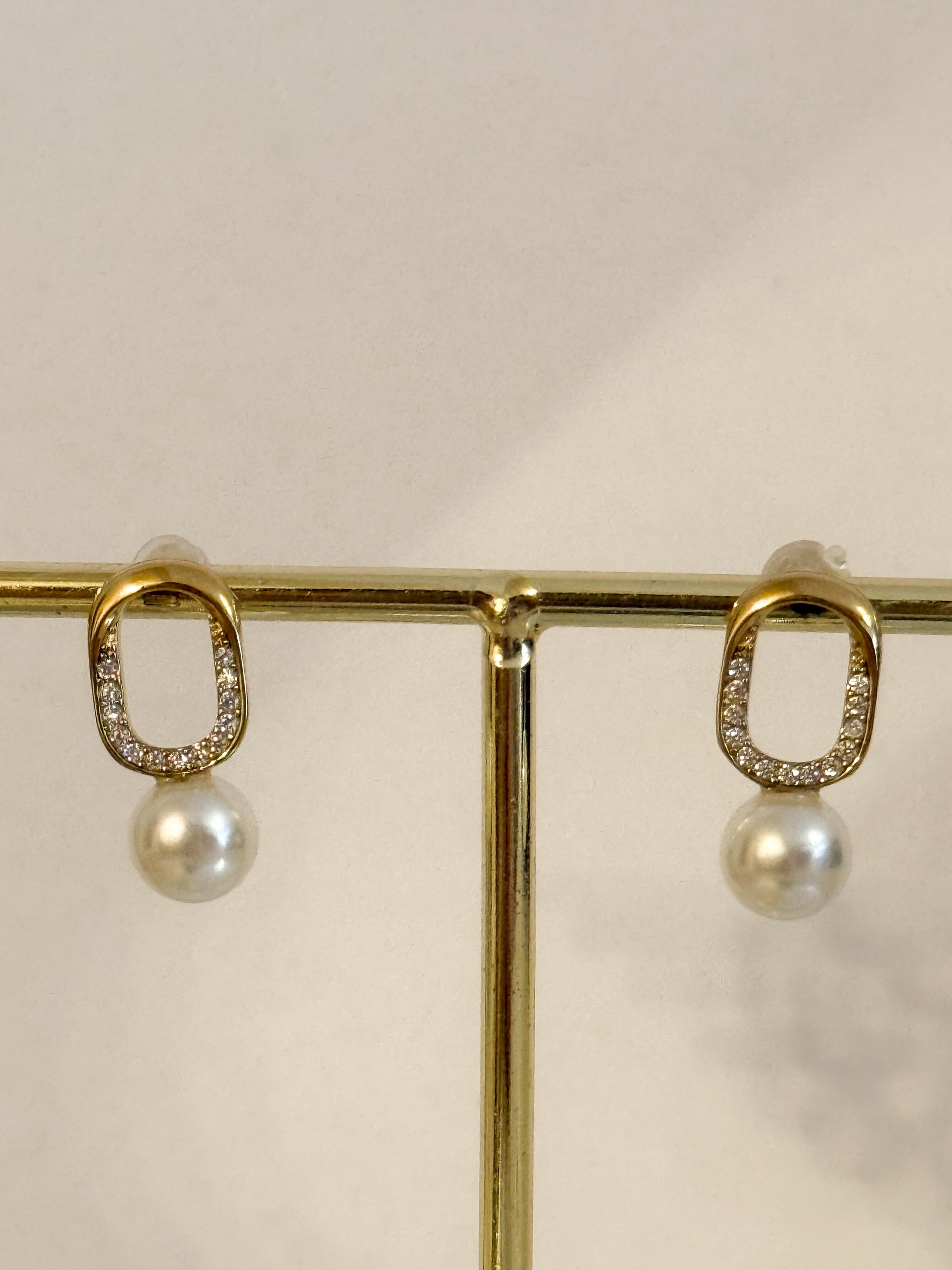 Pendientes Luz Serena ( Óvalo Blanco con Circonitas)