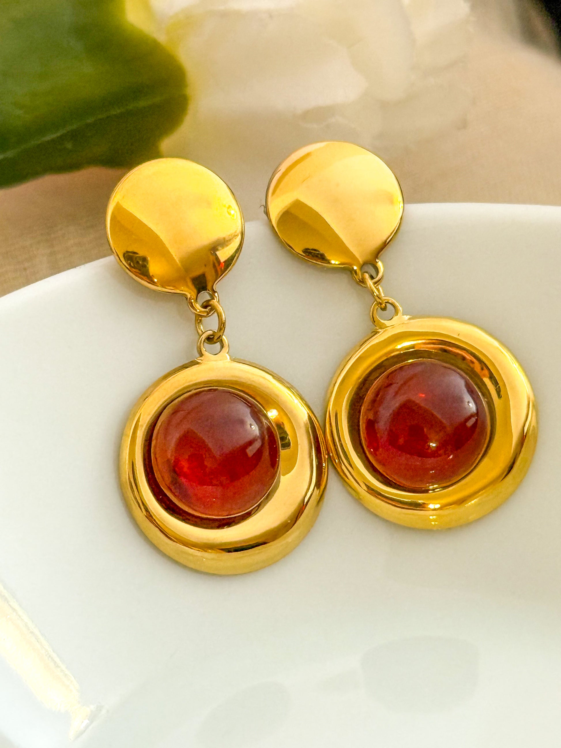 Pendientes Oro Circular(Círculo con piedra color miel) – Acero Inoxidable