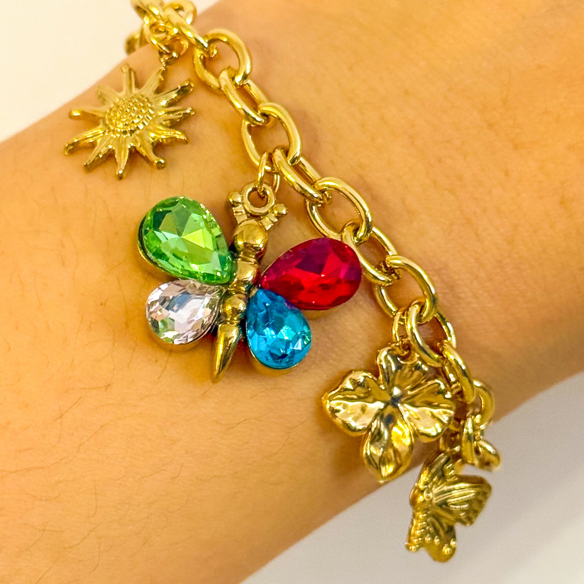 Pulsera Charms Aurora (Mariposa + Sol + Hojas)