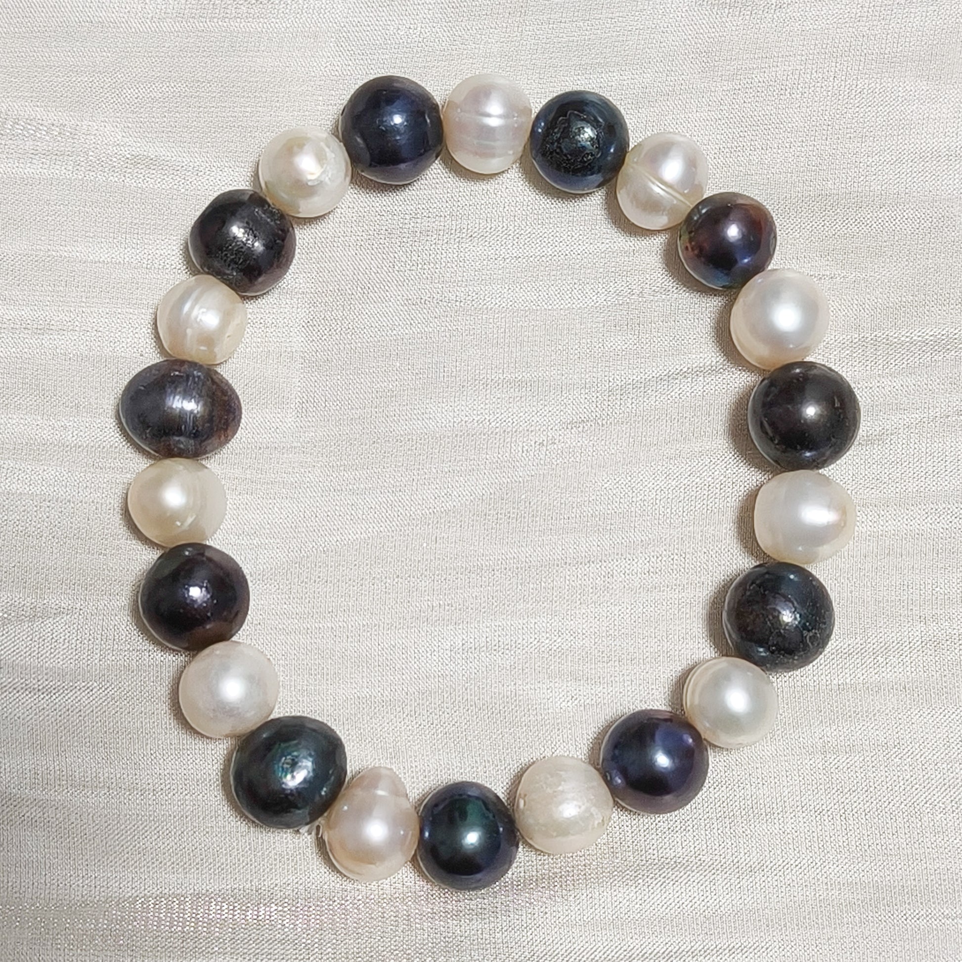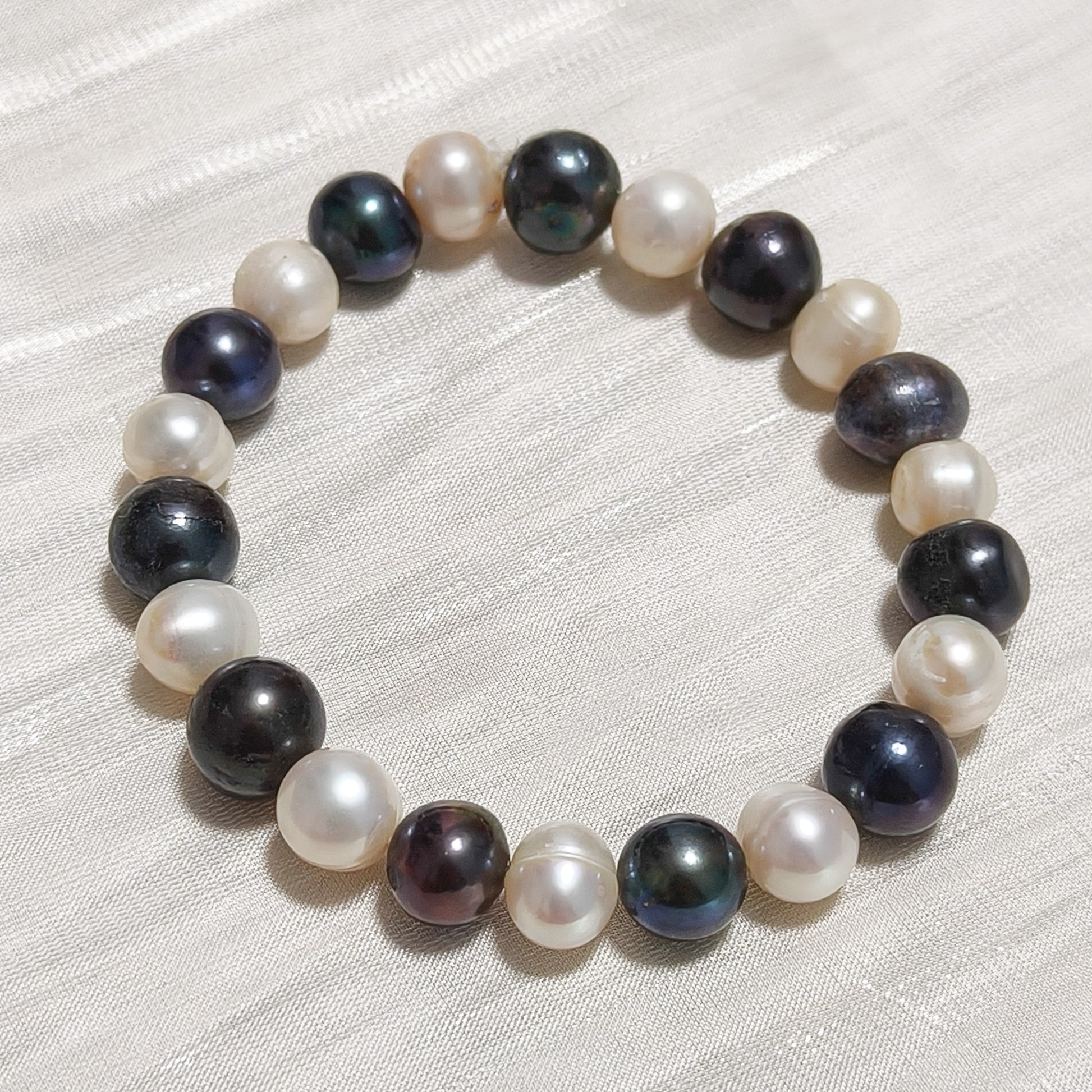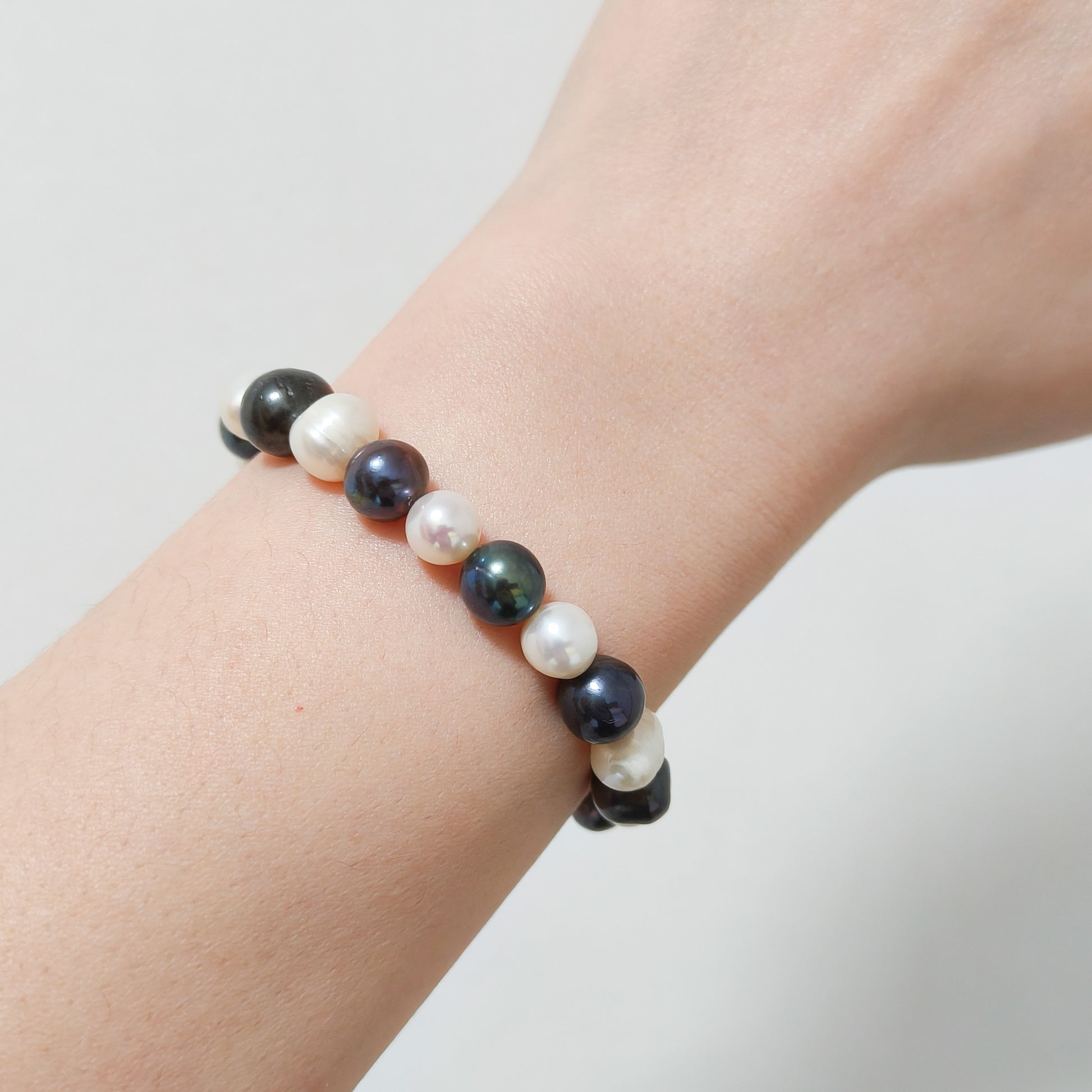 Diseño elástico con perlas redondeadas en tonos claros y oscuros que se alternan como pequeñas lunas. El contraste hace que la muñeca se vea elegante, especial y con mucha personalidad. Una pulsera sencilla pero con presencia, que se nota sin ser exagerada.
