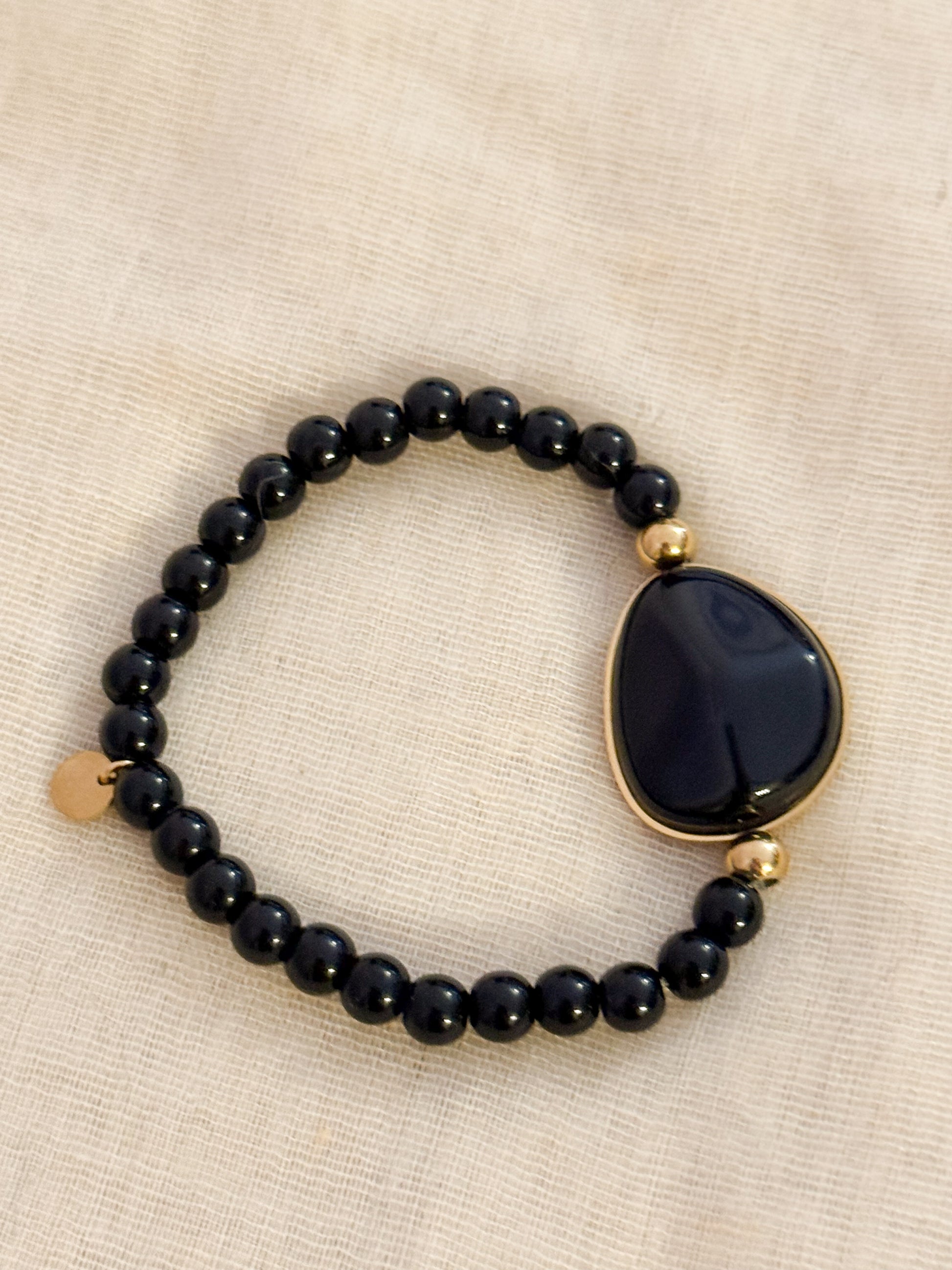 Descripción: Pulsera elástica con piedra original redondas y colgante en forma de corazón, disponible en dos tonos. Material resistente e hipoalergénico.