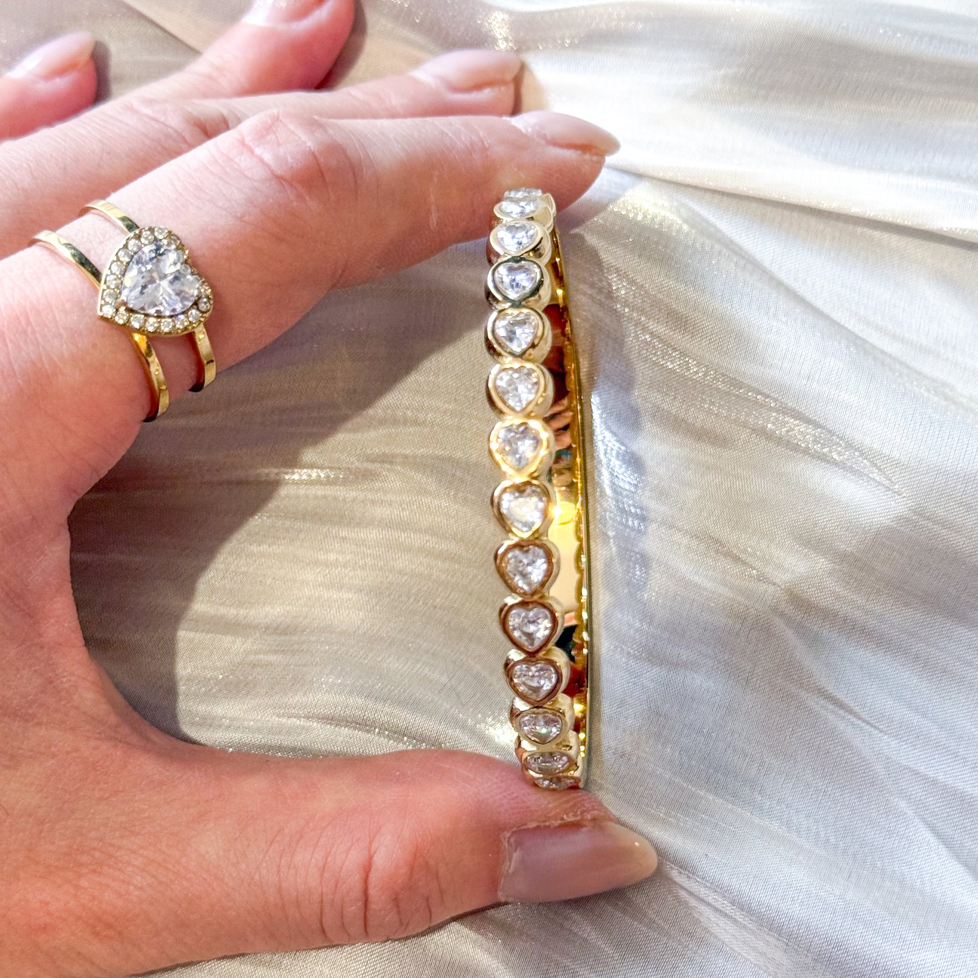 Una pulsera delicada y luminosa, formada por pequeños corazones que reflejan la luz con suavidad. Aporta un toque femenino y elegante, perfecta para quienes buscan una joya romántica pero fácil de llevar.